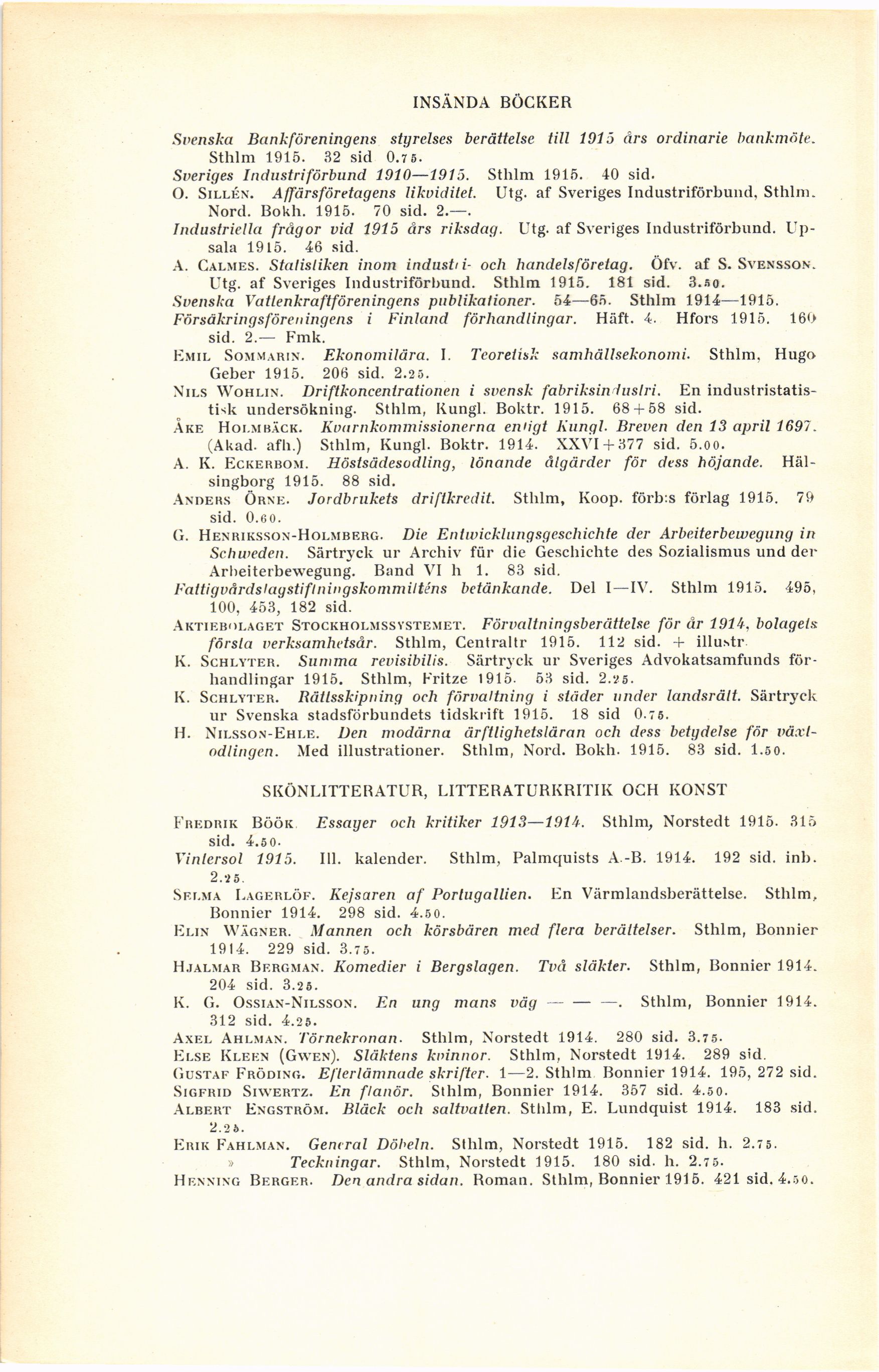 Sthlm 1915. 32 sid 0.75.