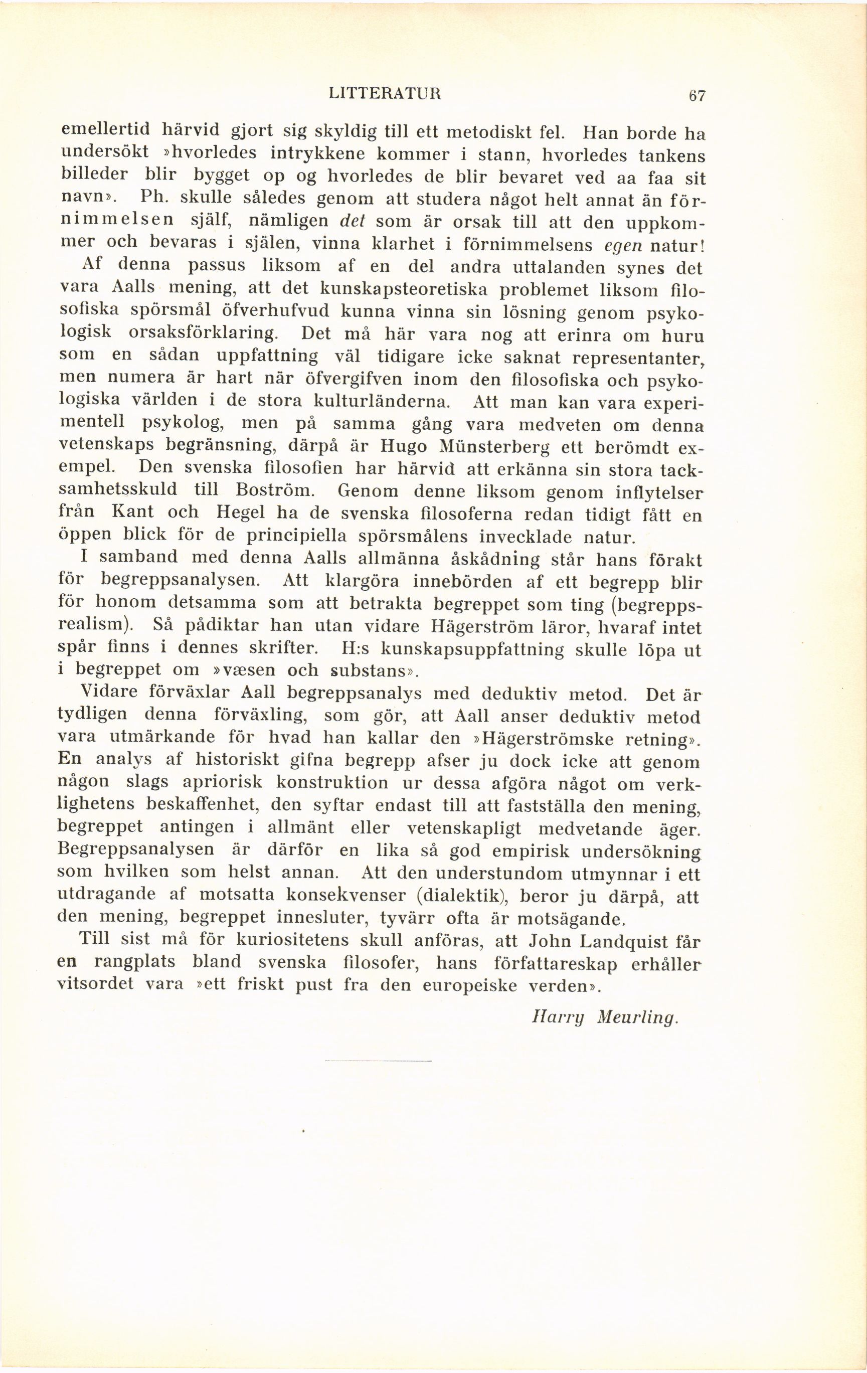 Full resolution (JPEG) - On this page / på denna sida - Häfte 1 - Litteratur - Svensk filosofi bedömd af norsk vetenskapsman. Af Harry Meurling