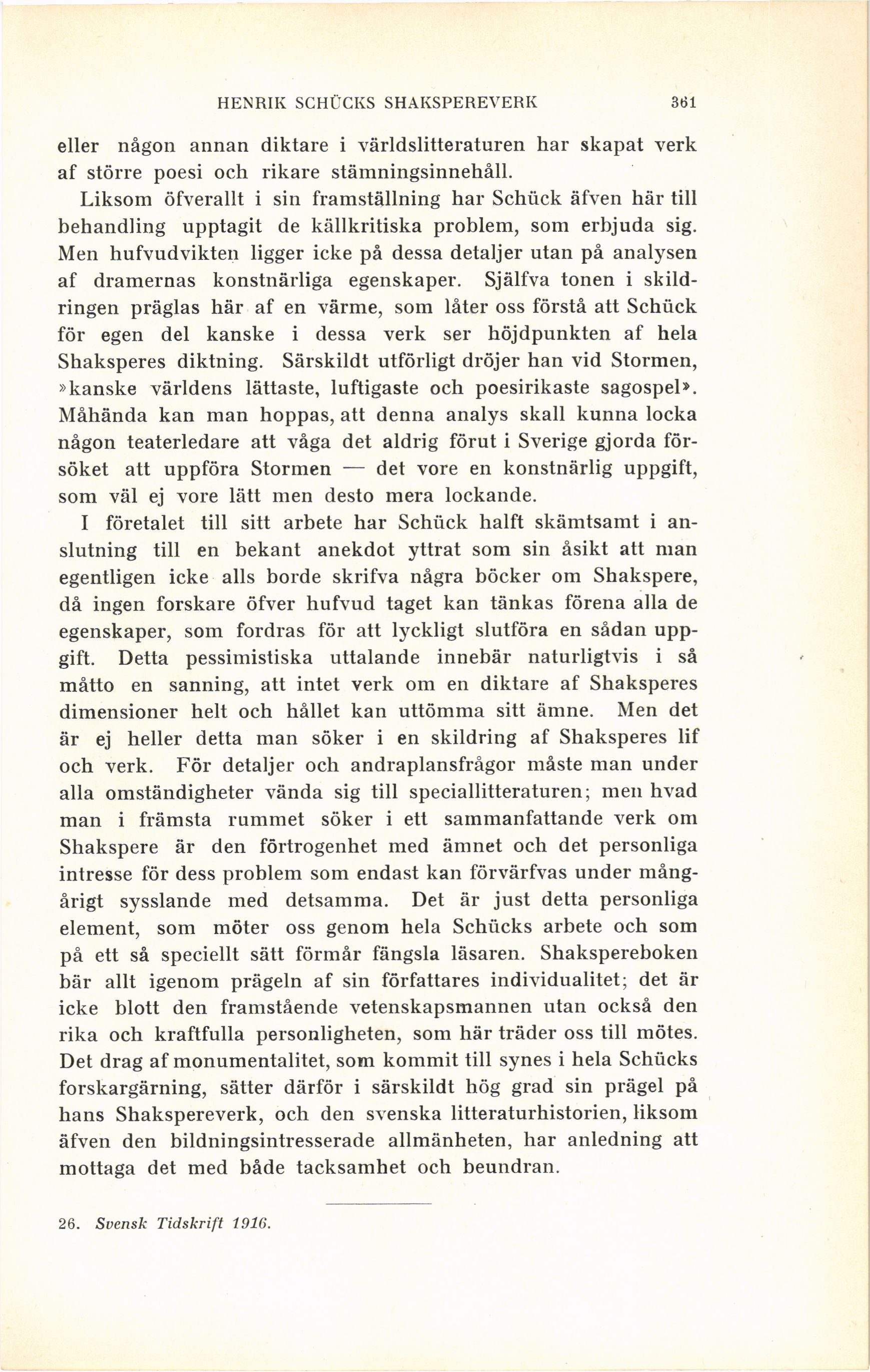 hans Shakspereverk, och den svenska litteraturhistorien, liksom