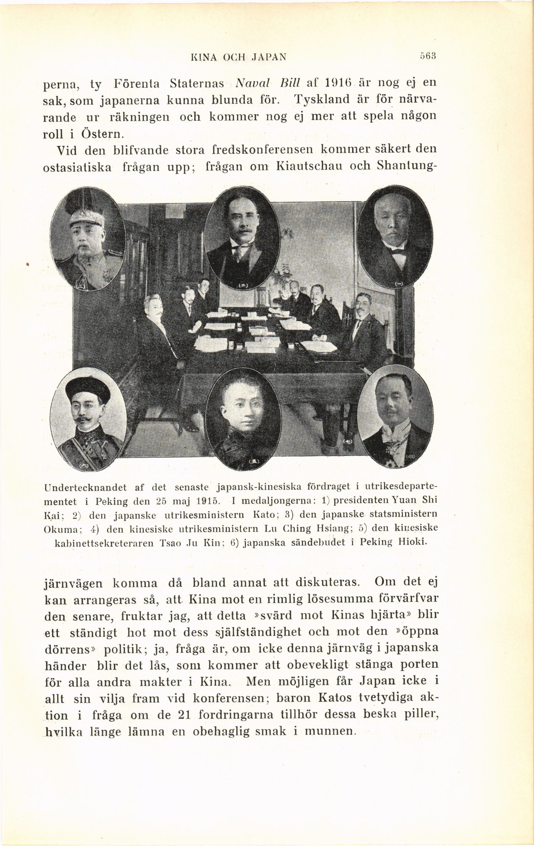 utrikesdepartementet i Peking den 25 maj 1915. I medaljongerna: 1) presidenten Yuan Sbi