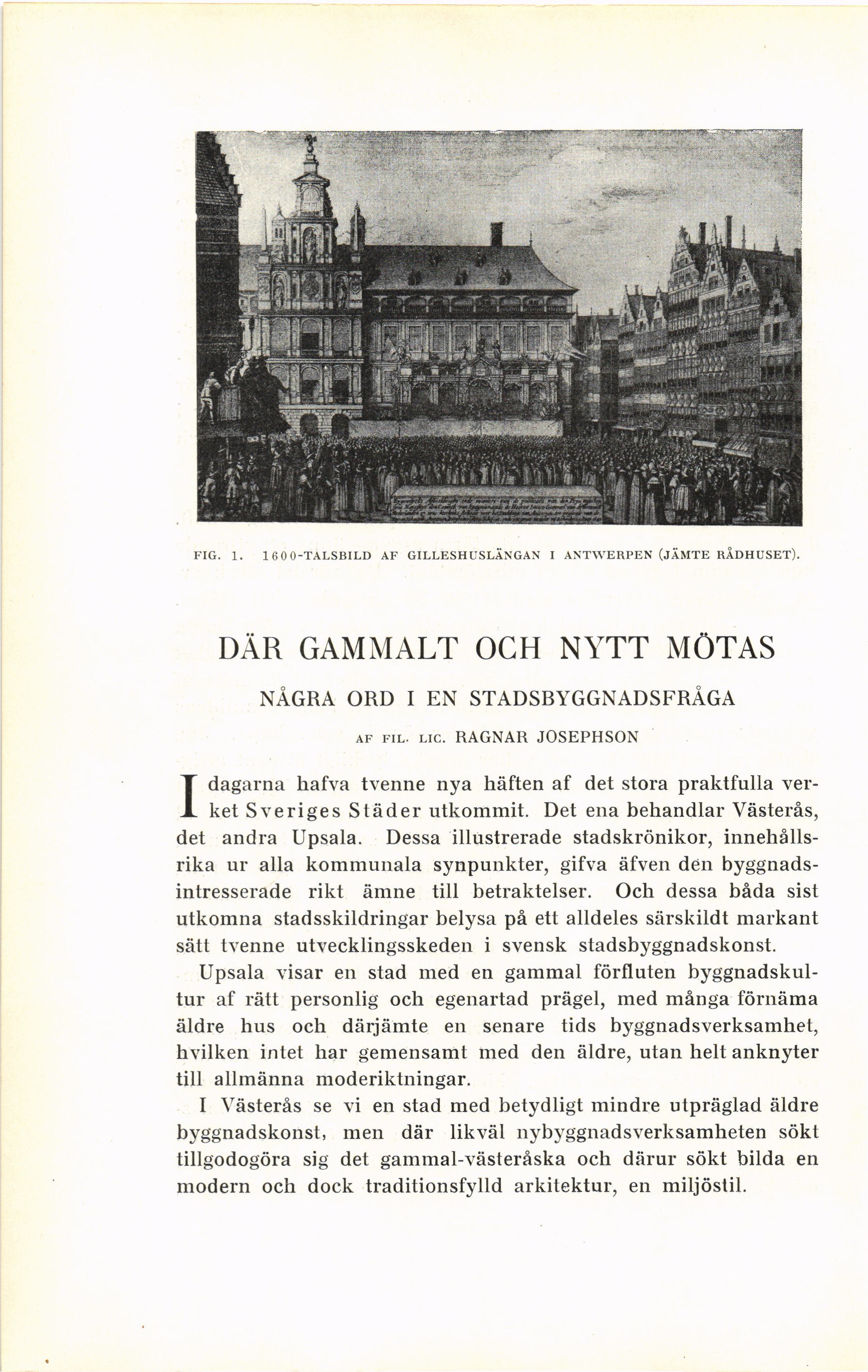 | FIG. 1. 1600-TALSBILD AF GILLESHUSLÄNGAN I ANTWERPEN (JÄMTE RÅDHUSET). |