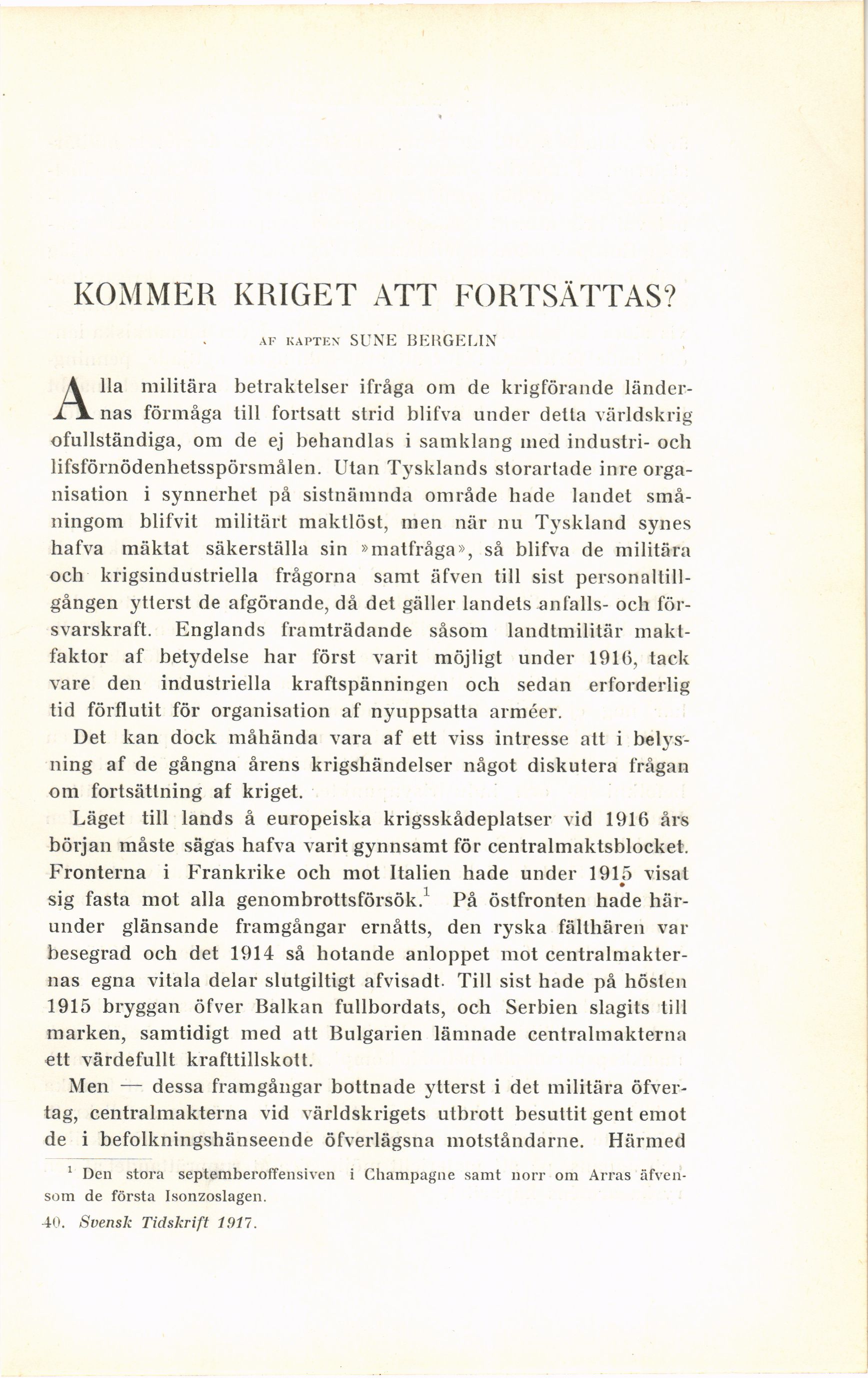 - Kommer kriget att fortsättas? Af Sune Bergelin