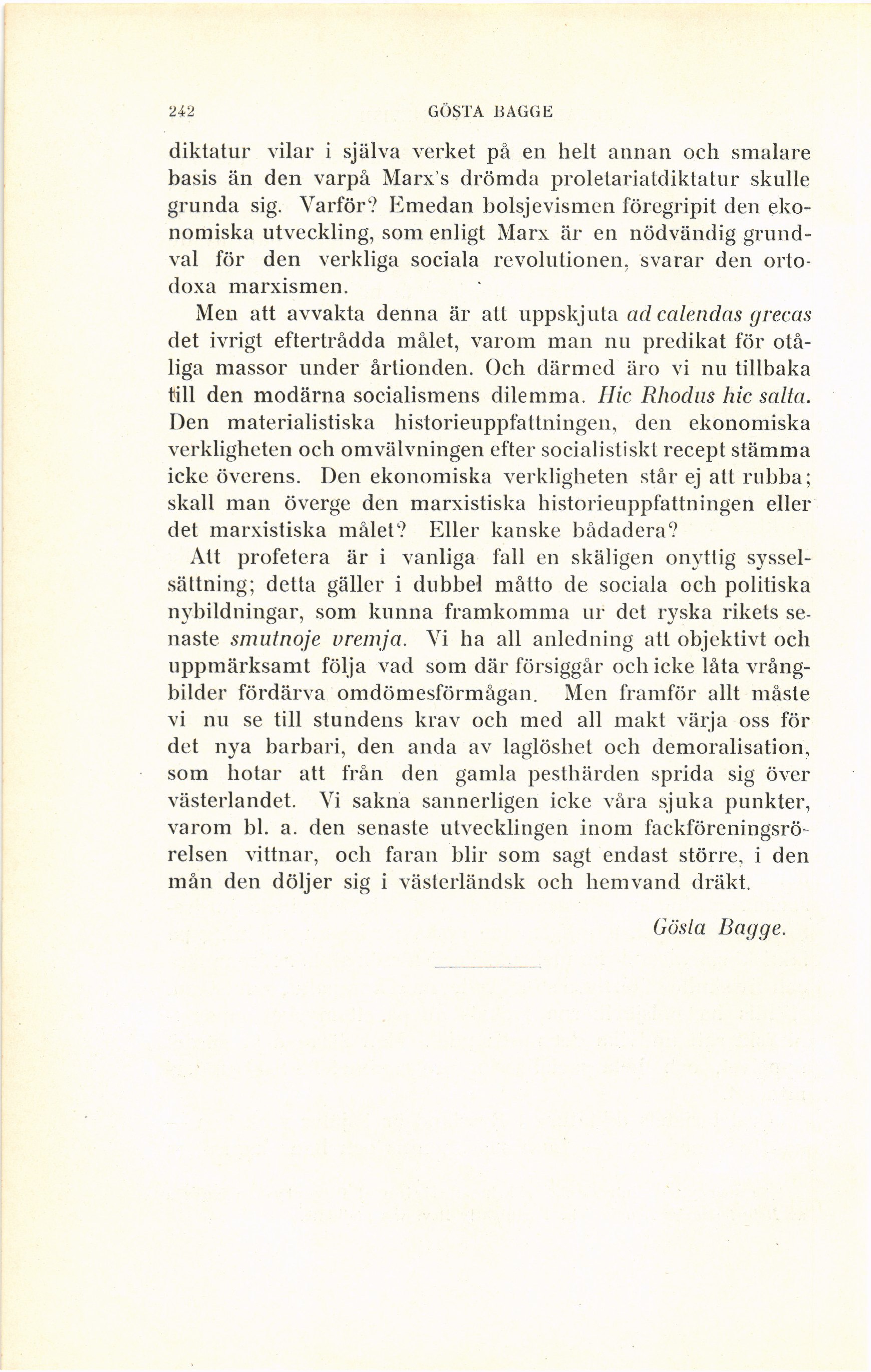 242 GÖSTA BAGGE