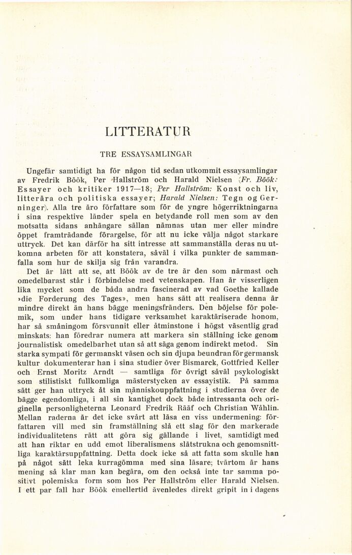 Full resolution (JPEG) - On this page / på denna sida - Häfte 4 - Litteratur - Tre essaysamlingar. Av O. Wieselgren - Fredrik Böök: Essayer och kritiker 1917—18 - Per Hallström: Konst och liv - Harald Nielsen: Tegn och Gerningar