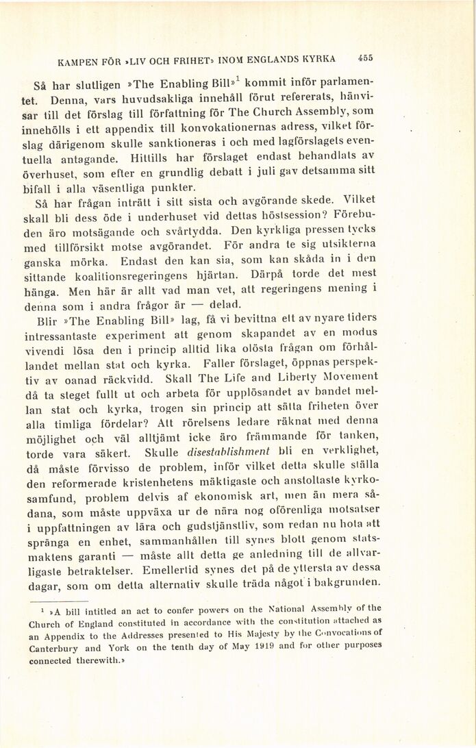 KAMPEN FÖR »LIV OCH FRIHET» INOM ENGLANDS KYRKA 455