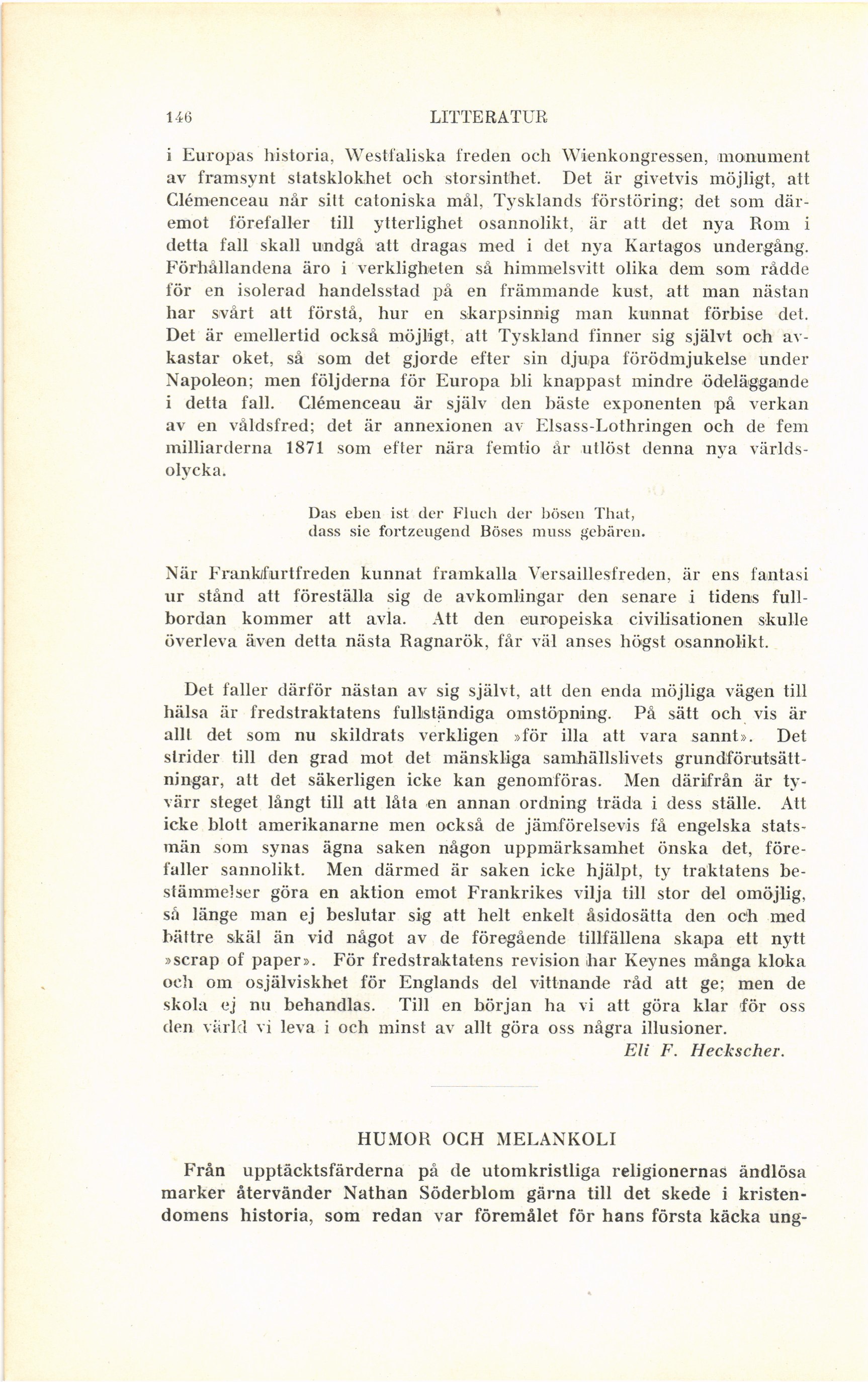 Full resolution (JPEG) - On this page / på denna sida - Häfte 2 - Litteratur - »För illa att vara sannt». Av Eli F. Heckscher - Humor och melankoli. Av Elof Åkesson