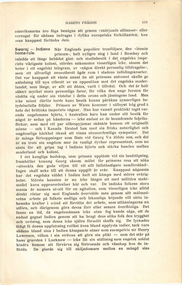 Full resolution (JPEG) - On this page / på denna sida - Häfte 8 - Dagens frågor 5. 12. 1921 - Rustningsminskningens problem - Swaraj—Indiens home-rule