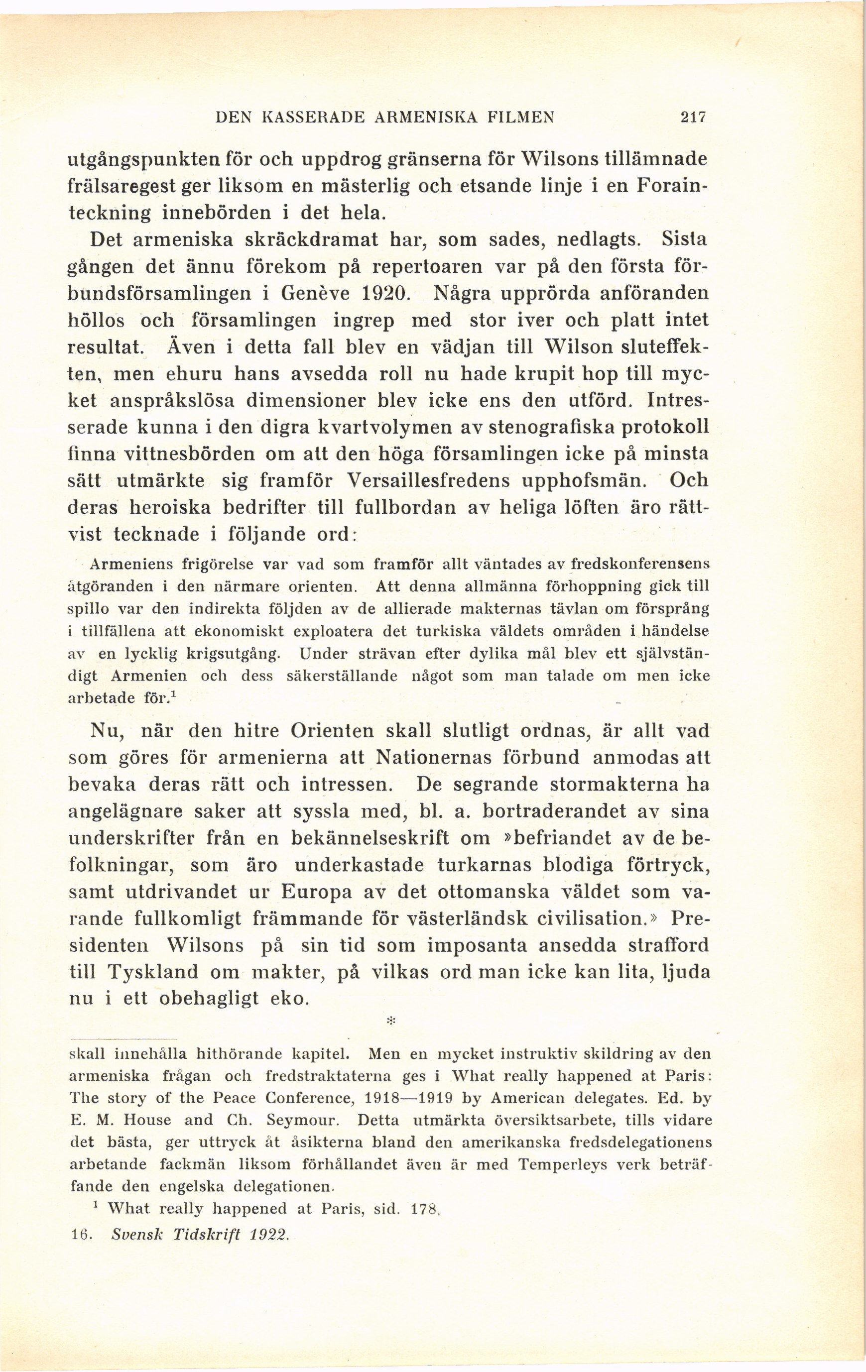 armeniska frågan och fredstraktaterna ges i What really happened ät Paris: