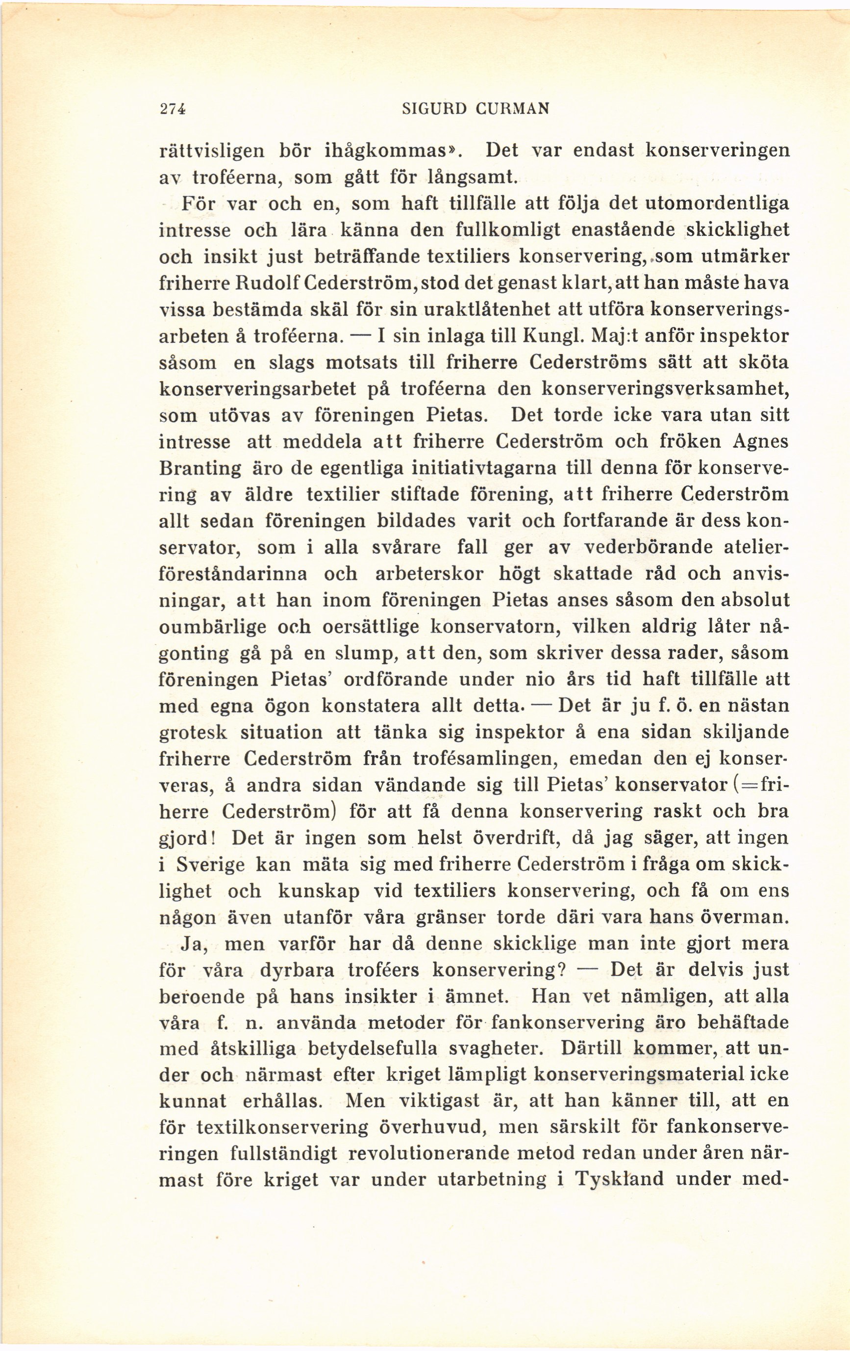 konservering av äldre textilier stiftade förening, att friherre Cederström