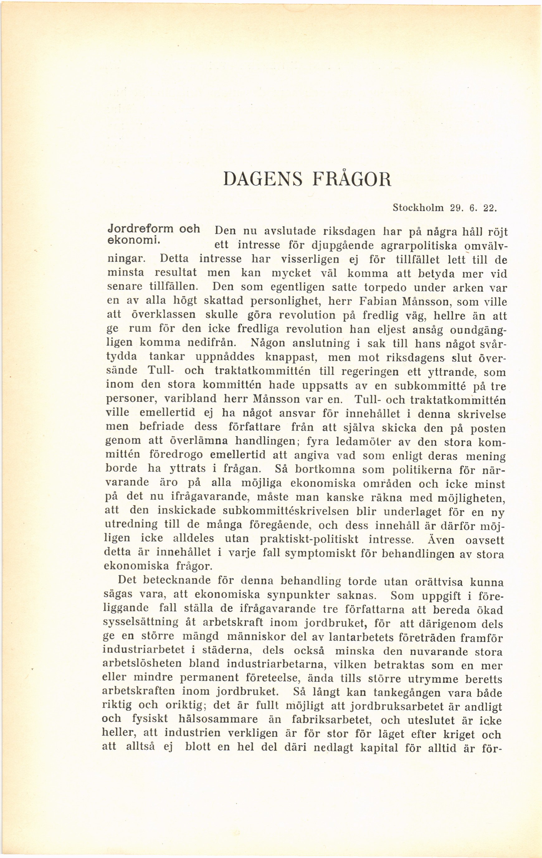 Full resolution (JPEG) - On this page / på denna sida - Häfte 5 - Dagens Frågor 29. 6. 1922 - Jordreform och ekonomi