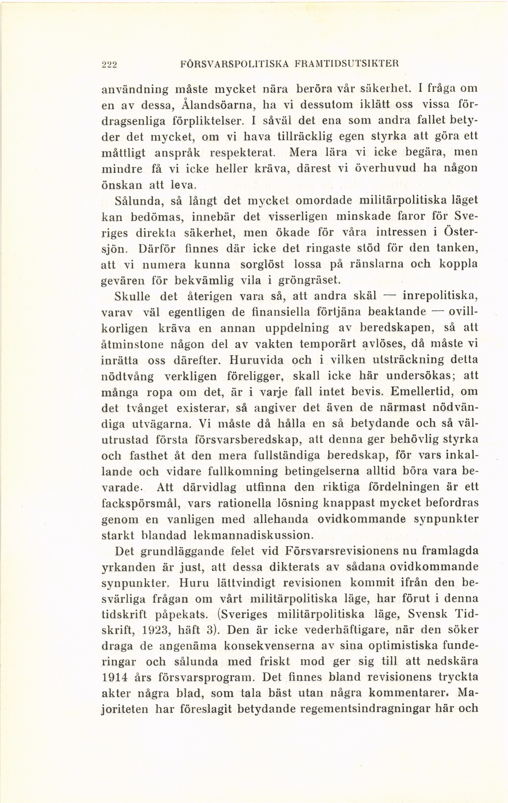 222 FÖRSVARSPOLITISKA FRAMTIDSUTSIKTER