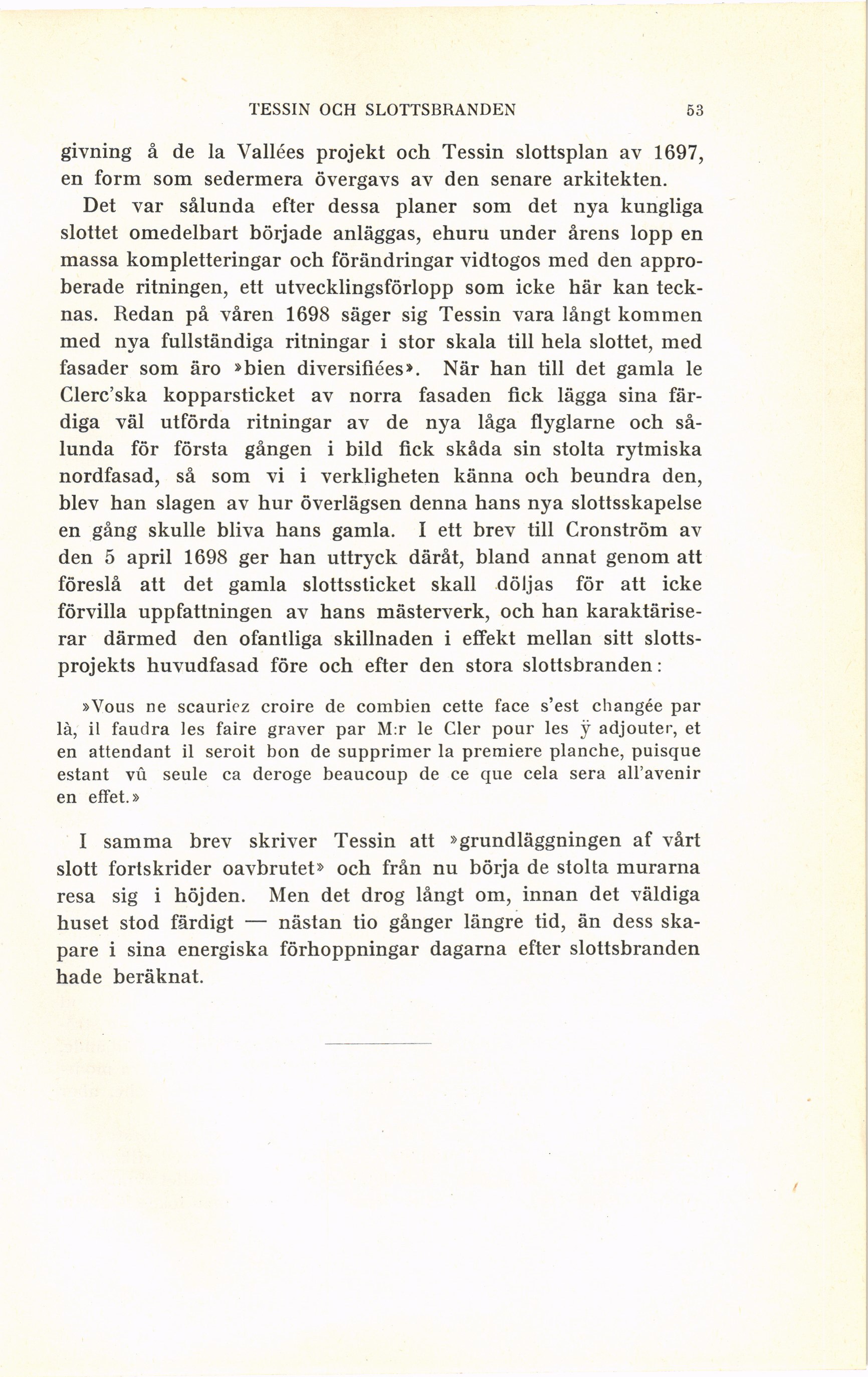 givning å de la Vallées projekt och Tessin slottsplan av 1697,