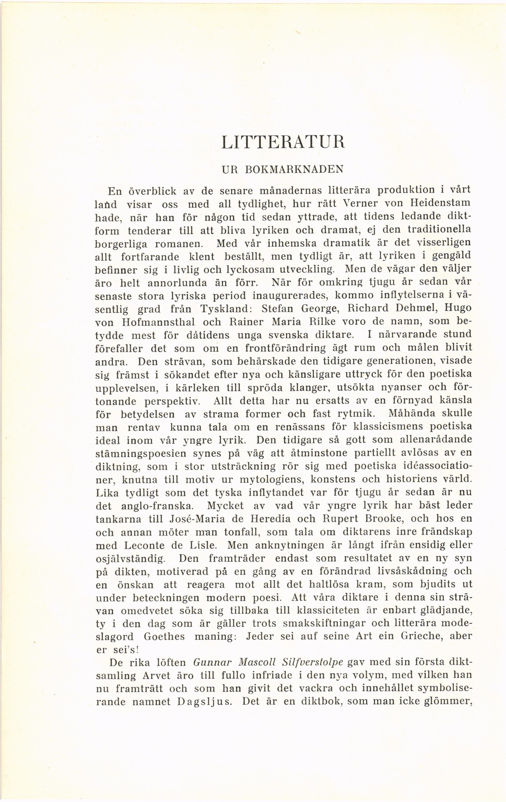Full resolution (JPEG) - On this page / på denna sida - Häfte 1 - Litteratur - Ur bokmarknaden. Av O. Wieselgren - Gunnar Mascoll Silfverstolpe: Dagsljus