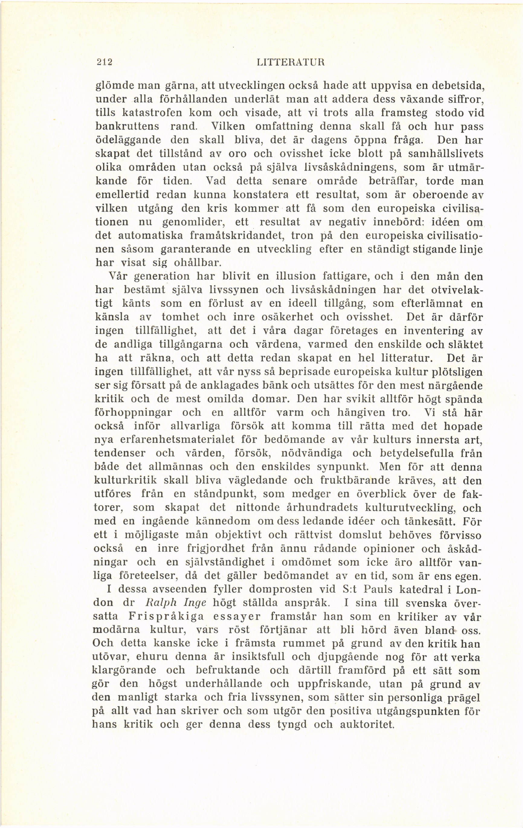 Full resolution (JPEG) - On this page / på denna sida - Häfte 3 - Litteratur - En kult ur kritiker. Av Otto S. Holmdahl - Ralph Inge: Frispråkiga essayer