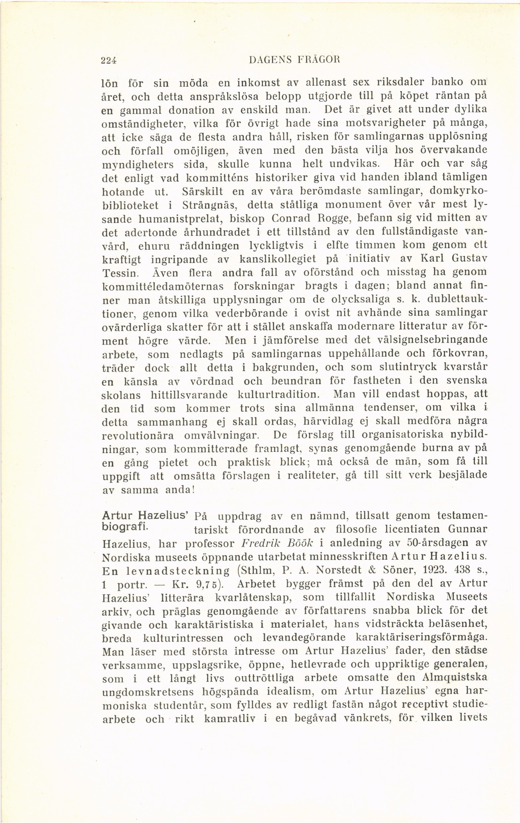 Full resolution (JPEG) - On this page / på denna sida - Häfte 3 - Dagens frågor 11. 4. 1924 - Ur den svenska bibliotekshistorien - Artur Hazelius’ biografi
