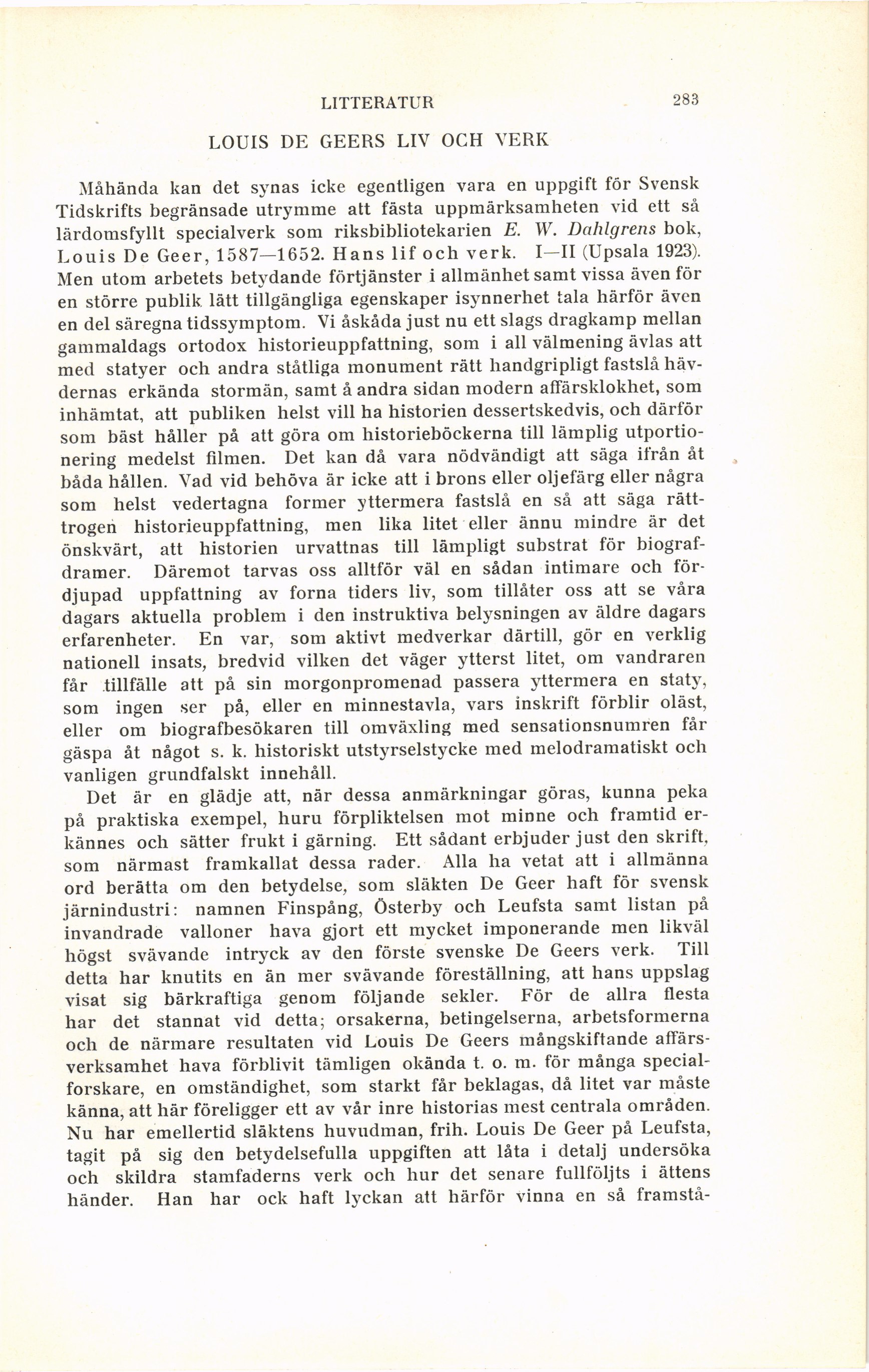 Full resolution (JPEG) - On this page / på denna sida - Häfte 4 - Litteratur - Louis de Geers liv och verk. Av Carl Hallendorrf - E. W. Dahlgren: Louis de Geer 1587—1652. Hans liv och verk. I—II