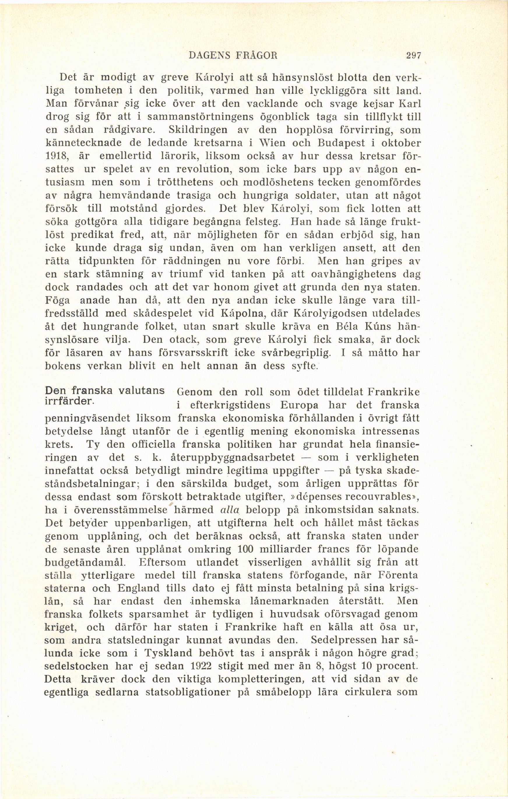 Full resolution (JPEG) - On this page / på denna sida - Häfte 4 - Dagens frågor 2. 6. 1924 - Károlyi och det nya Ungern - Den franska valutans irrfärder