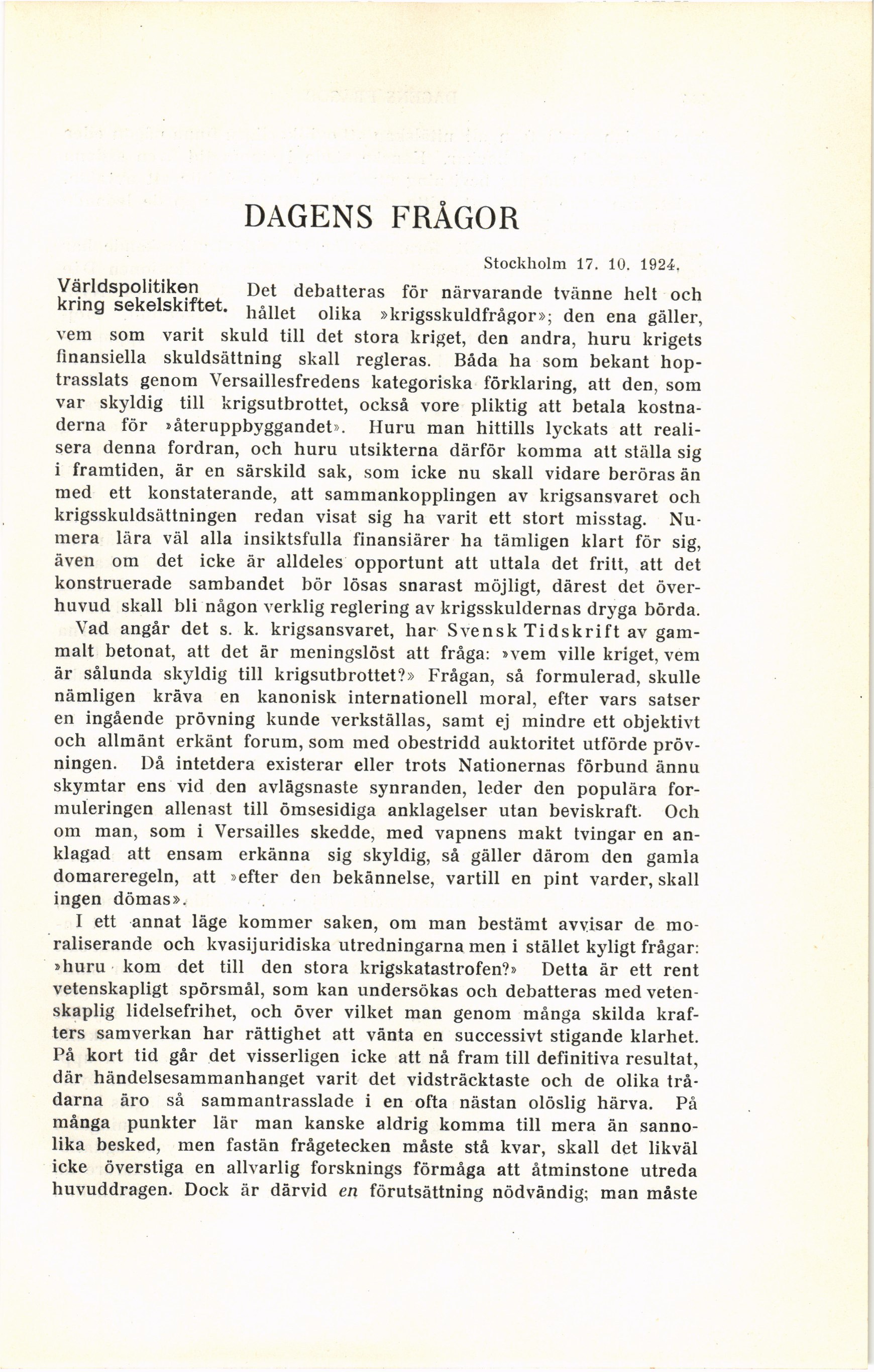 kring sekelskiftet. allet olika »krigsskuldfrågor»; den ena gäller,