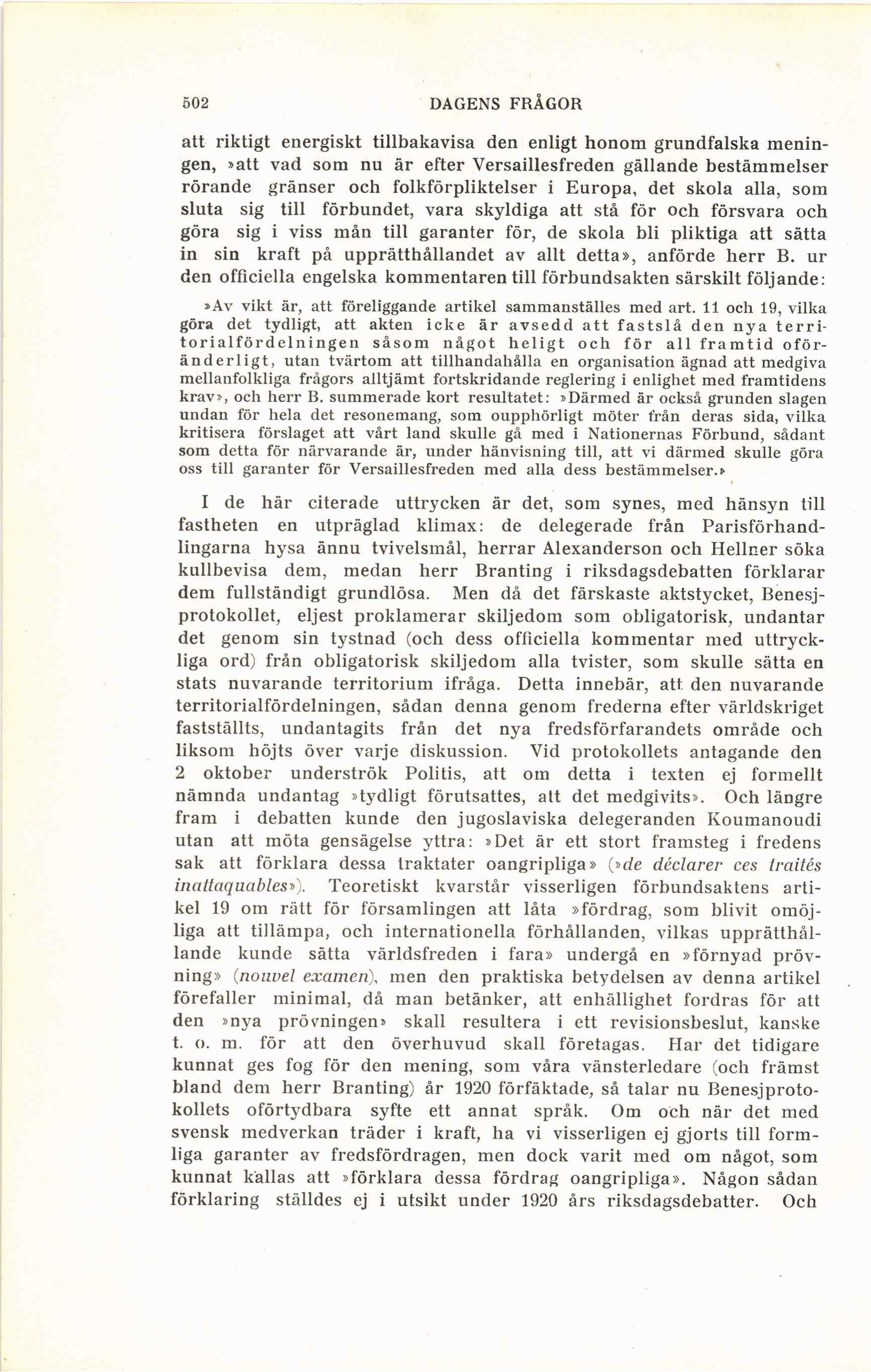 bland dem herr Branting) år 1920 förfäktade, så talar nu