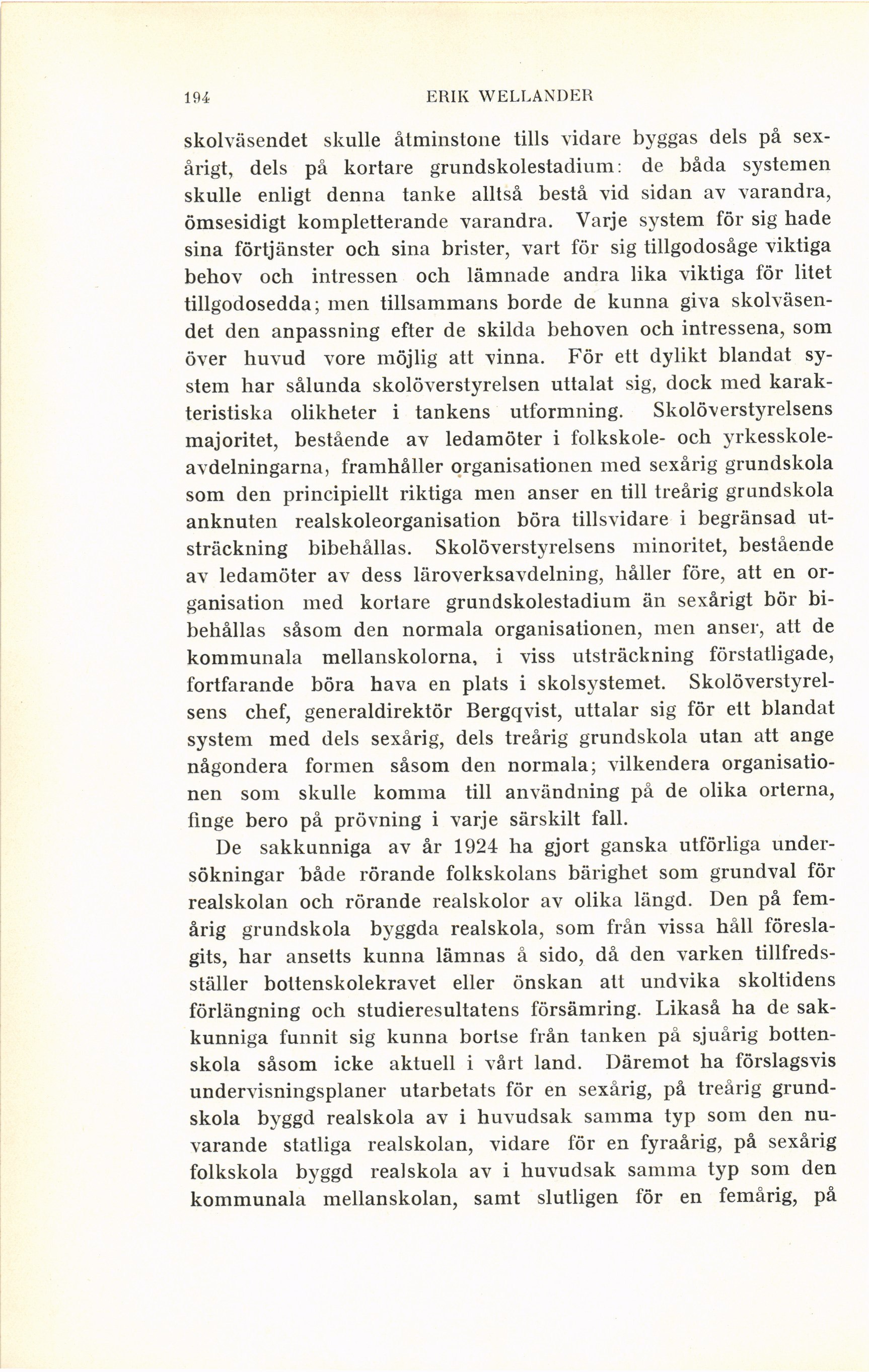 Skolöverstyrelsens chef, generaldirektör Bergqvist, uttalar sig för ett blandat