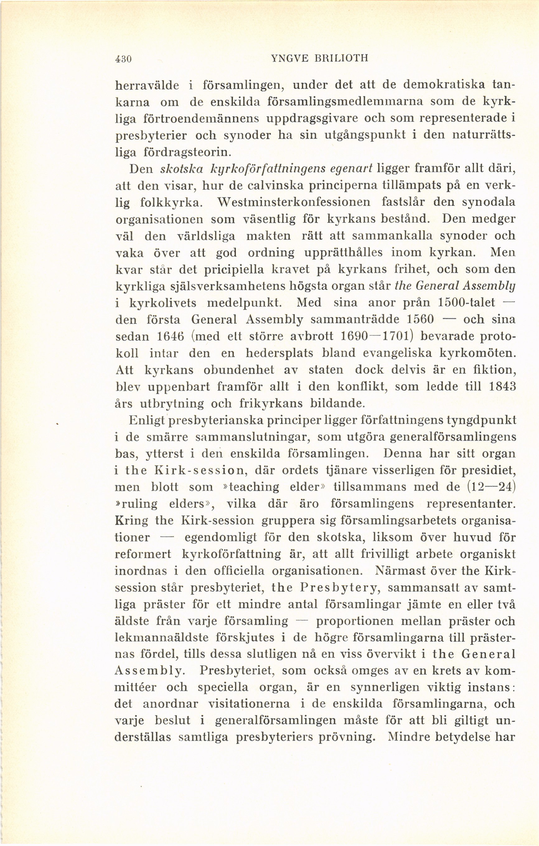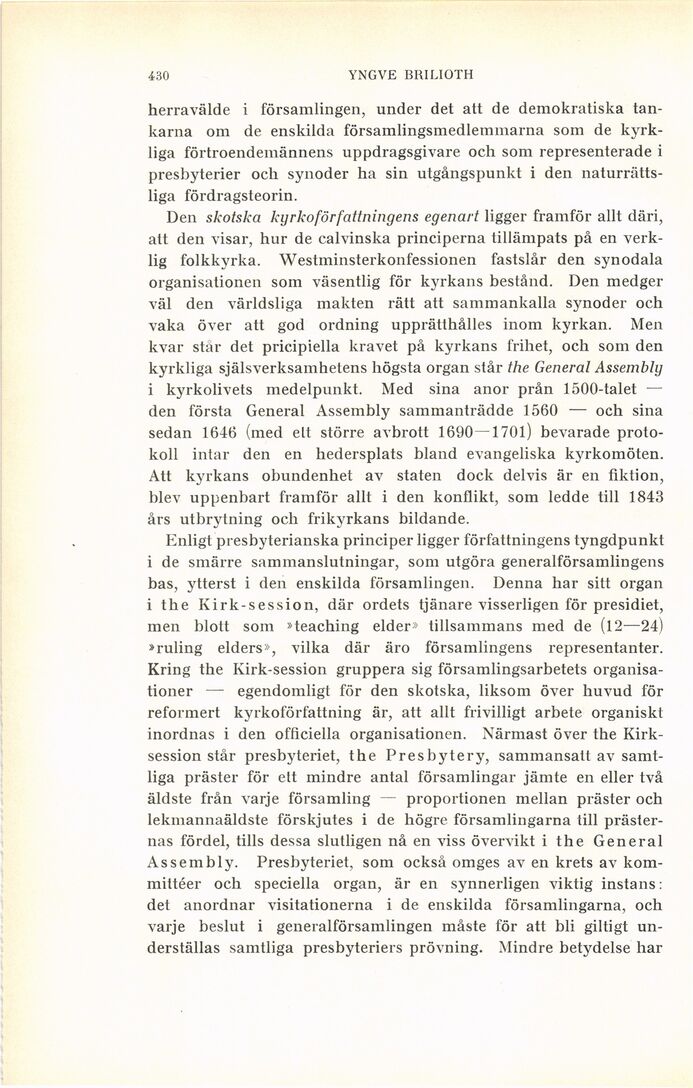Den skotska kyrkoförfattningens egenart ligger framför allt däri,