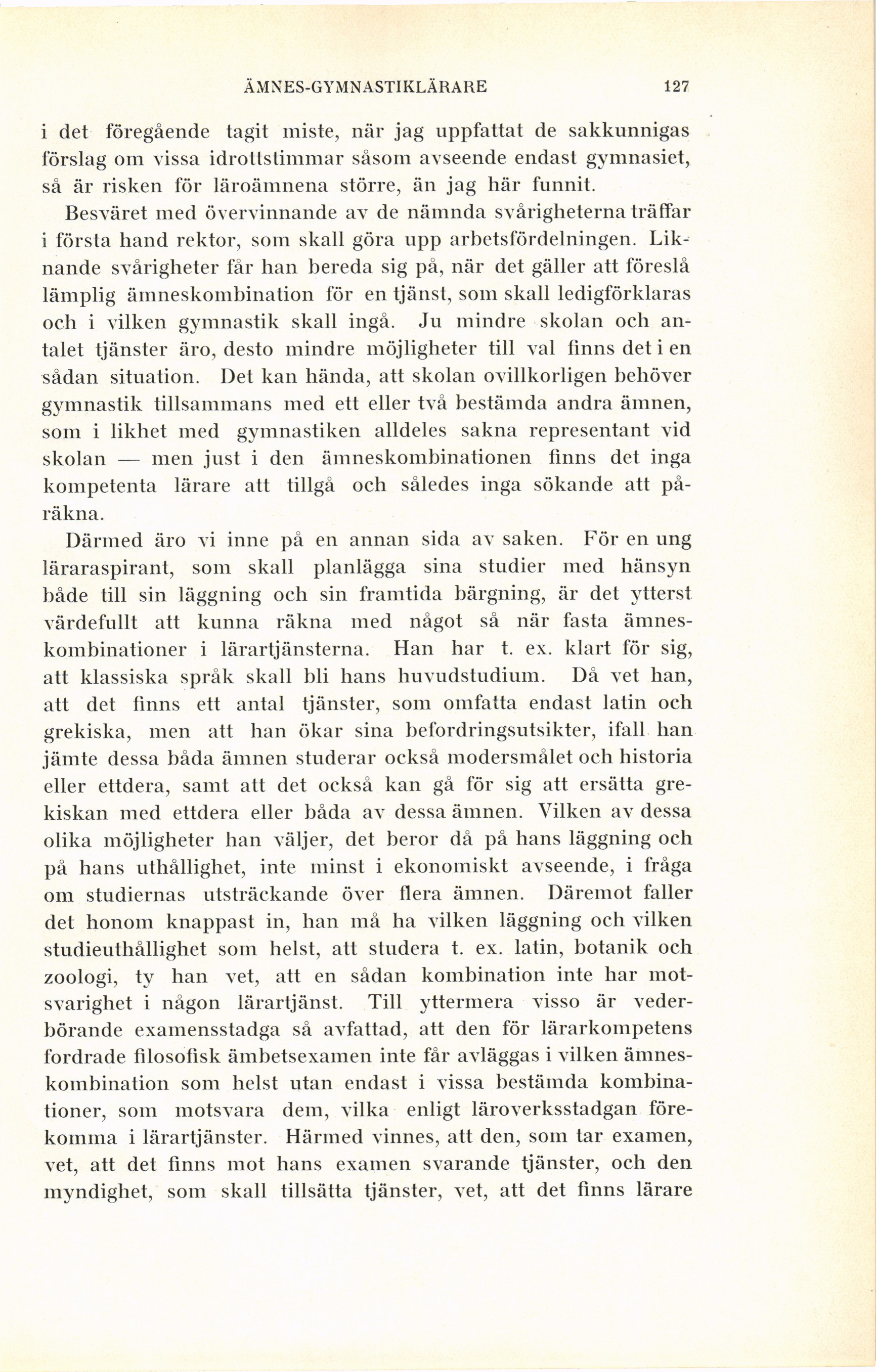 ämneskombinationer i lärartjänsterna. Han har t. ex. klart för sig,