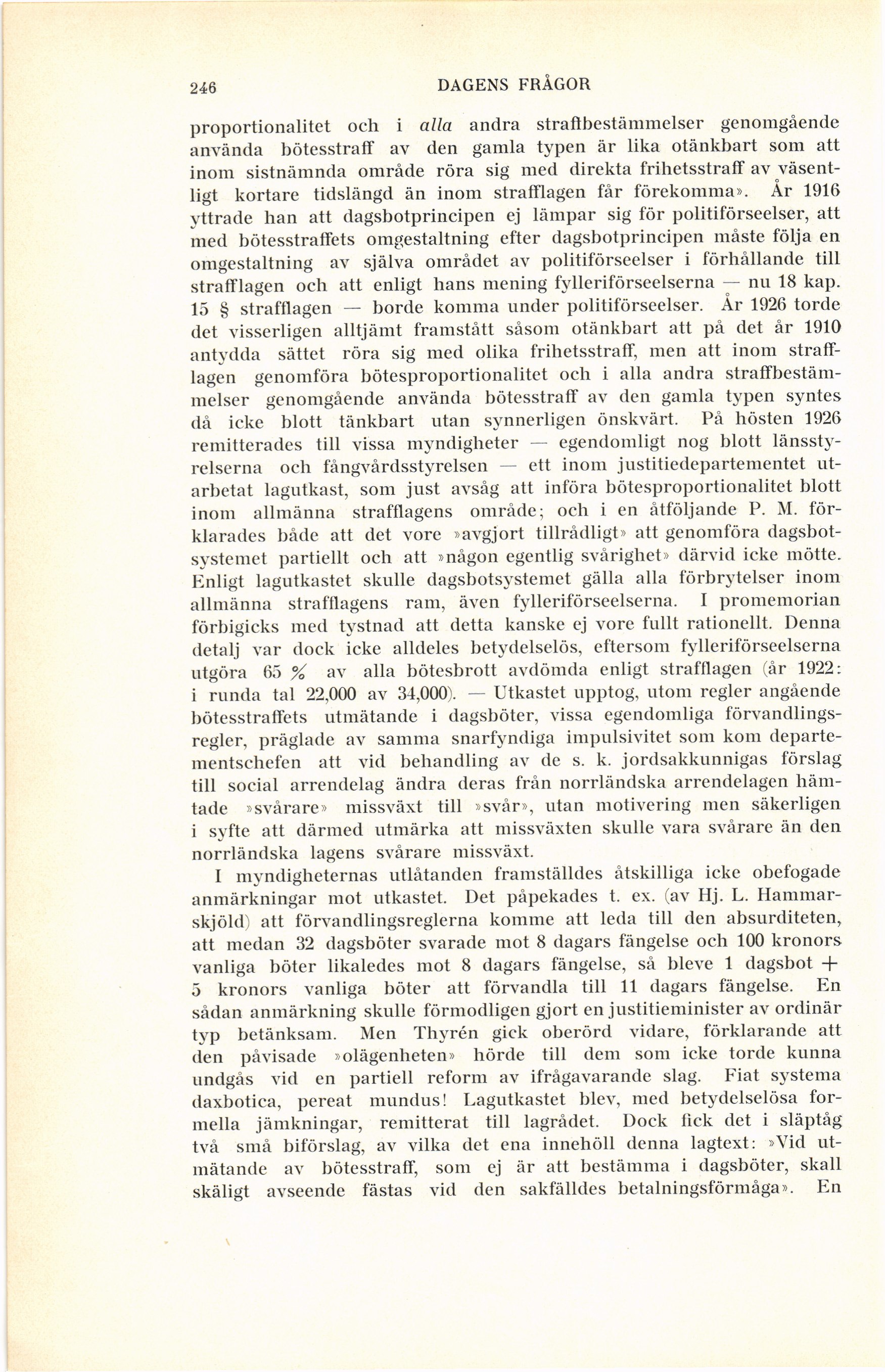 yttrade han att dagsbotprincipen ej lämpar sig för politiförseelser, att