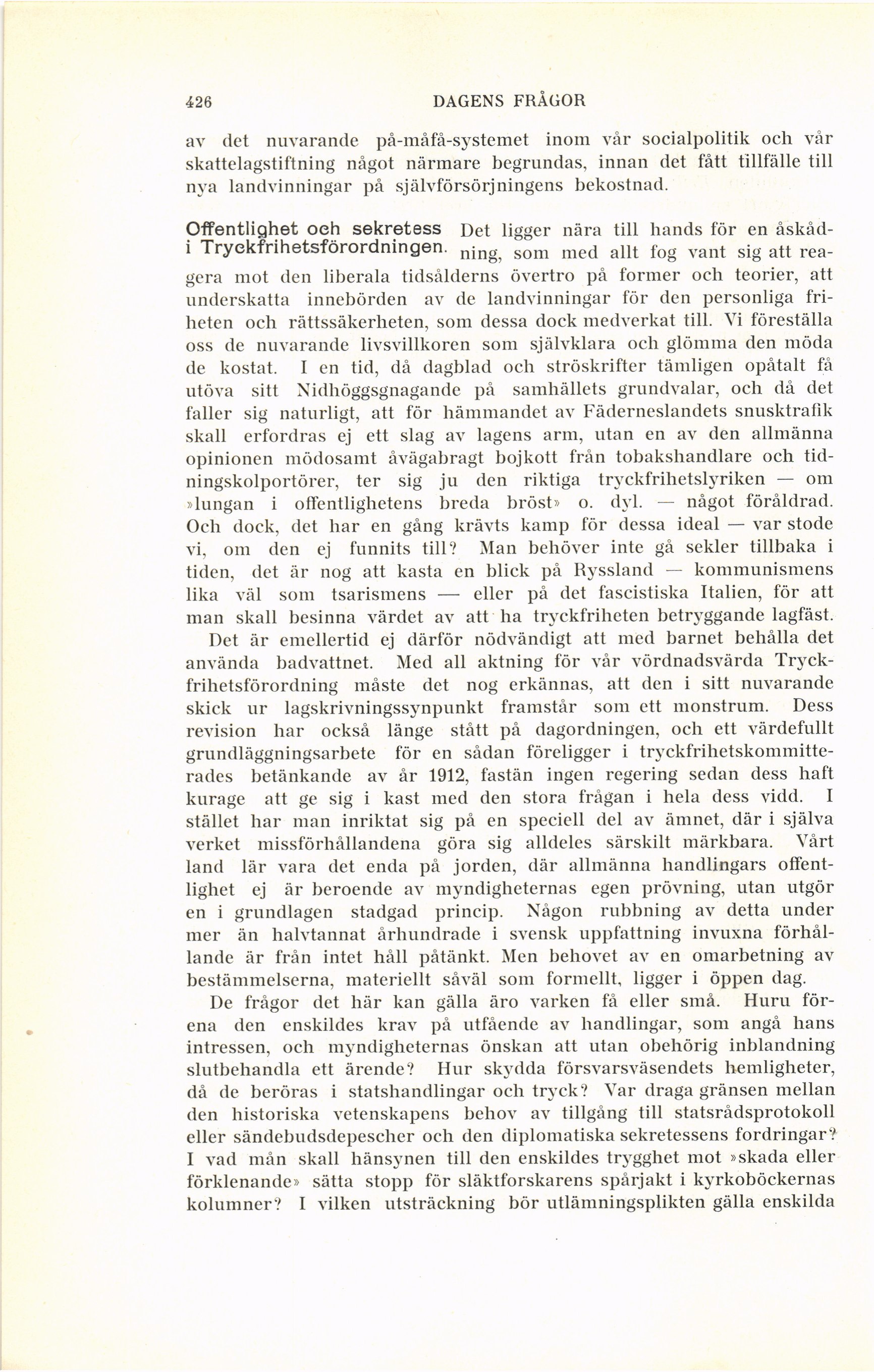 Full resolution (JPEG) - On this page / på denna sida - Häfte 6 - Dagens frågor 1 oktober 1927 - Socialpolitska konsekvenser - Offentlighet och sekretess i Tryckfrihetsförordningen