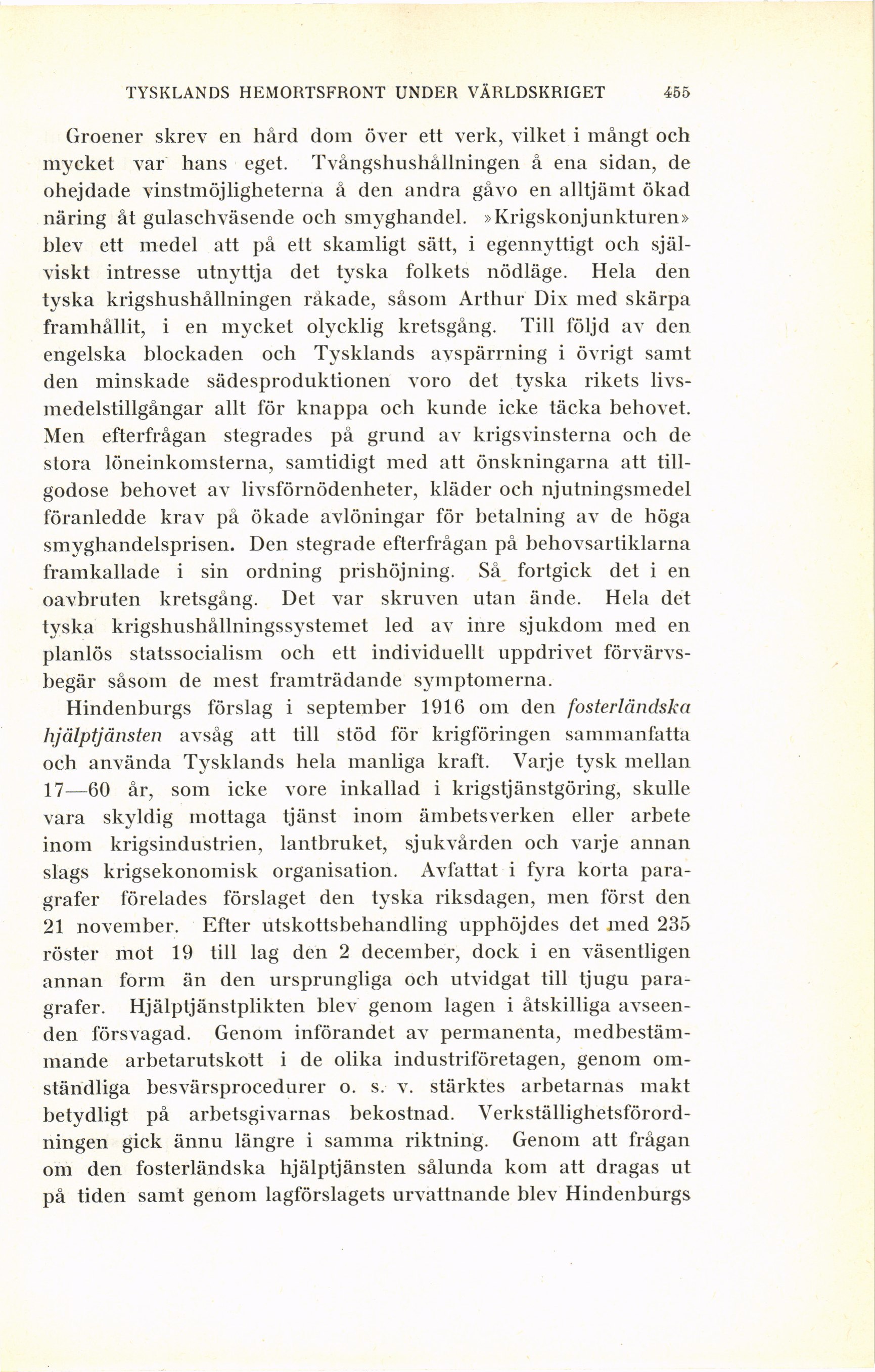 tyska krigshushållningen råkade, såsom Arthur Dix med skärpa