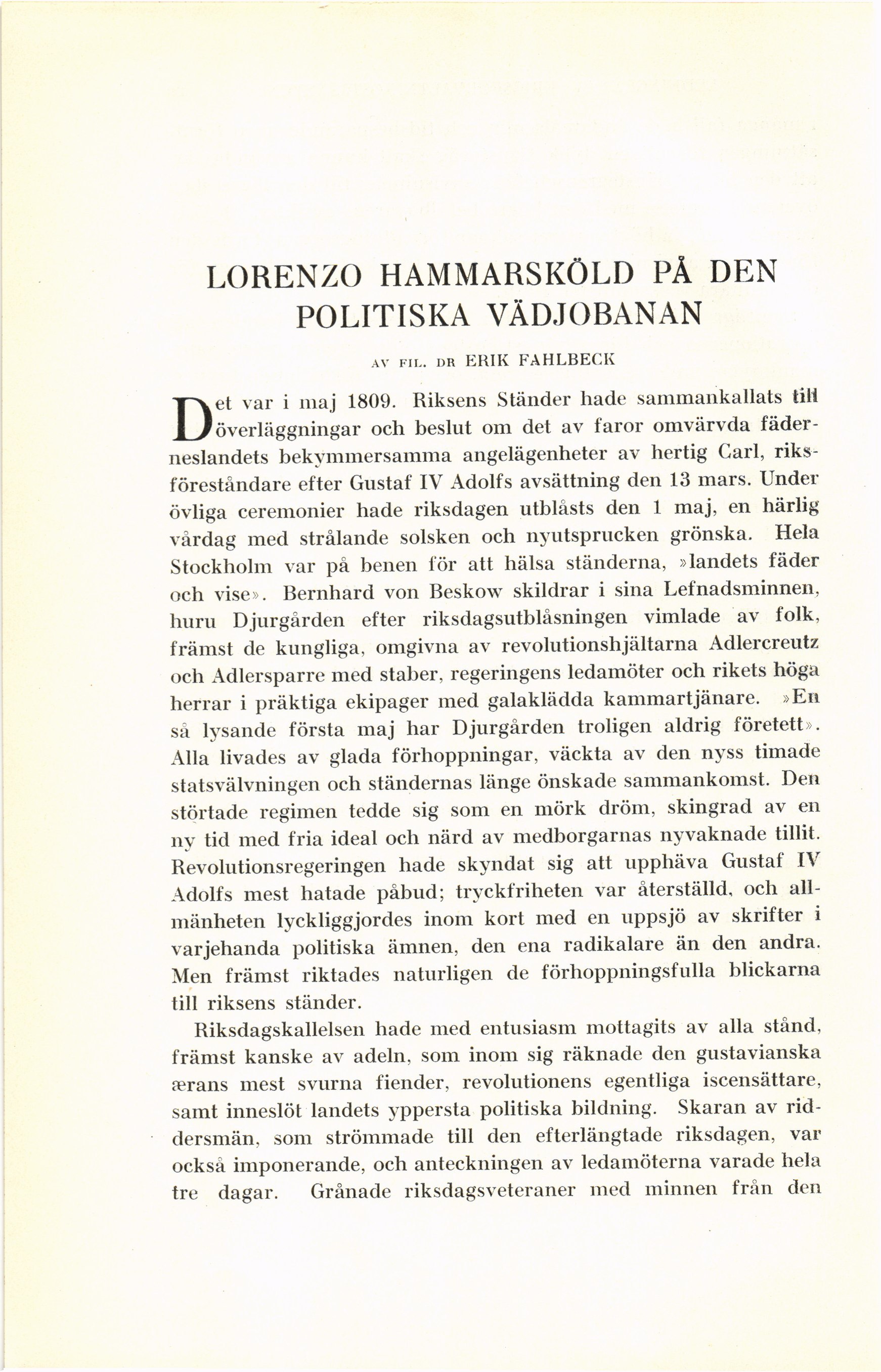 - Lorenzo Hammarsköld på den politiska vädjobanan. Av Erik Fahlbeck