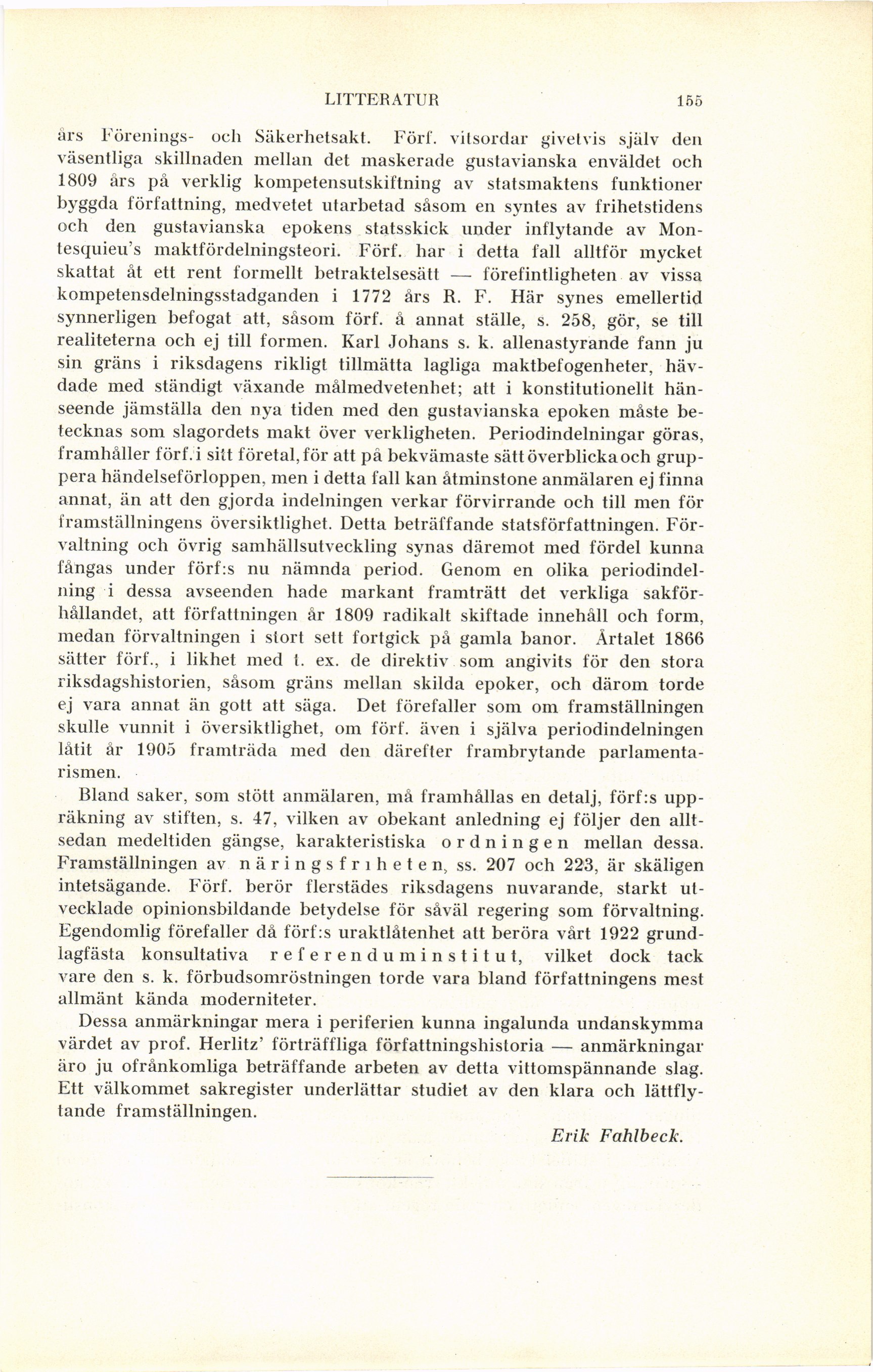 Full resolution (JPEG) - On this page / på denna sida - Häfte 2 - Litteratur - En författningshistoria. Av Erik Fahlbeck - Nils Herlitz: Grunddragen av det svenska statsskickets historia