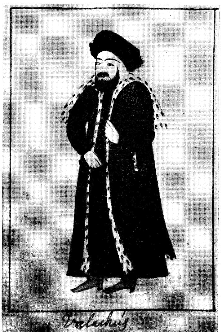 Fig. 2. Vallakisk bojar, efter en miniatyr å Kungl. Biblioteket i Stockholm, inköpt av Karl X Gustavs ambassadör Claes Rålamb i Konstantinopel år 1658. |