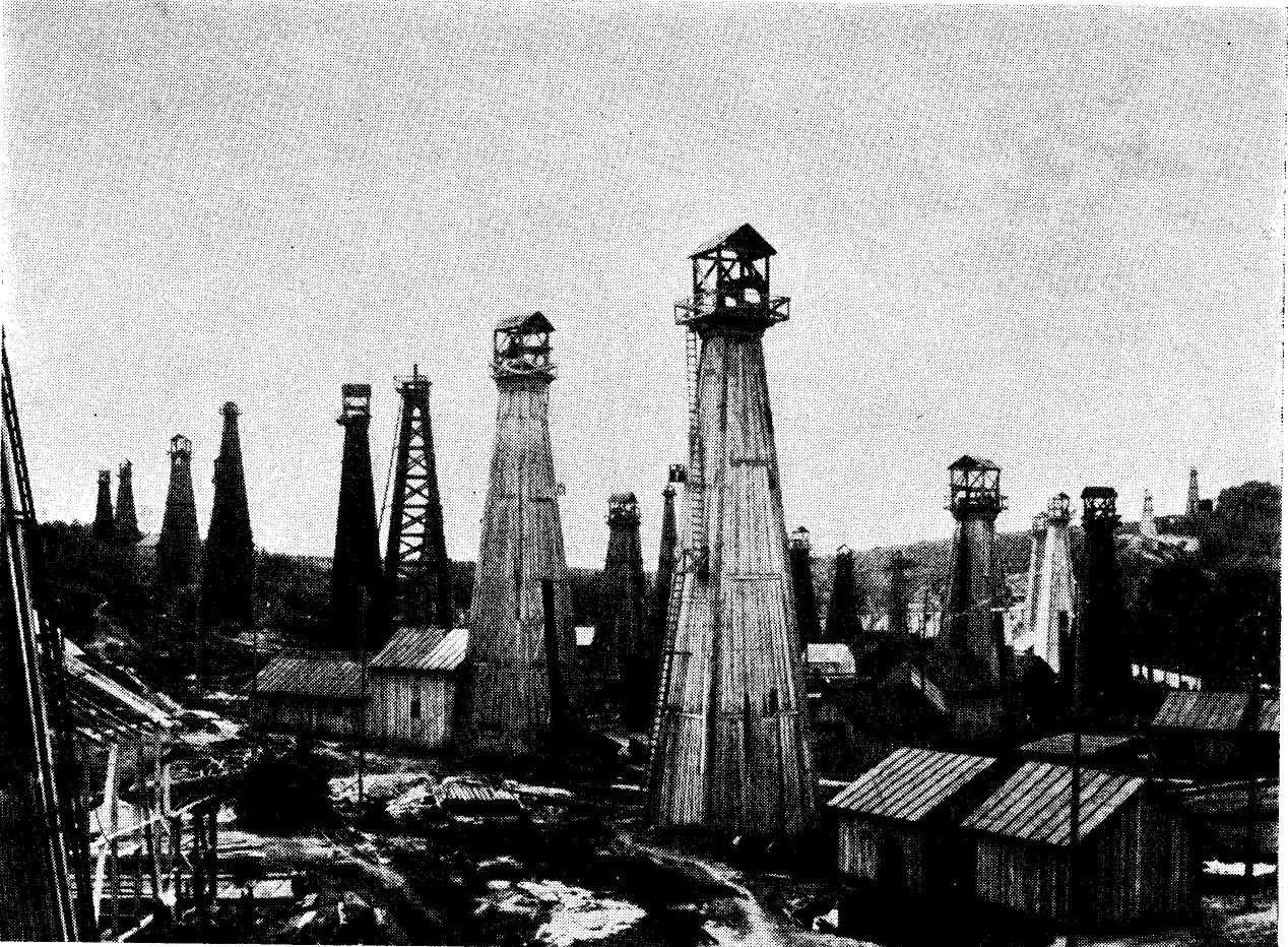 Fig. 4. Modern rumänsk industri. Oljekällor i Moreni (Vallakiet). |