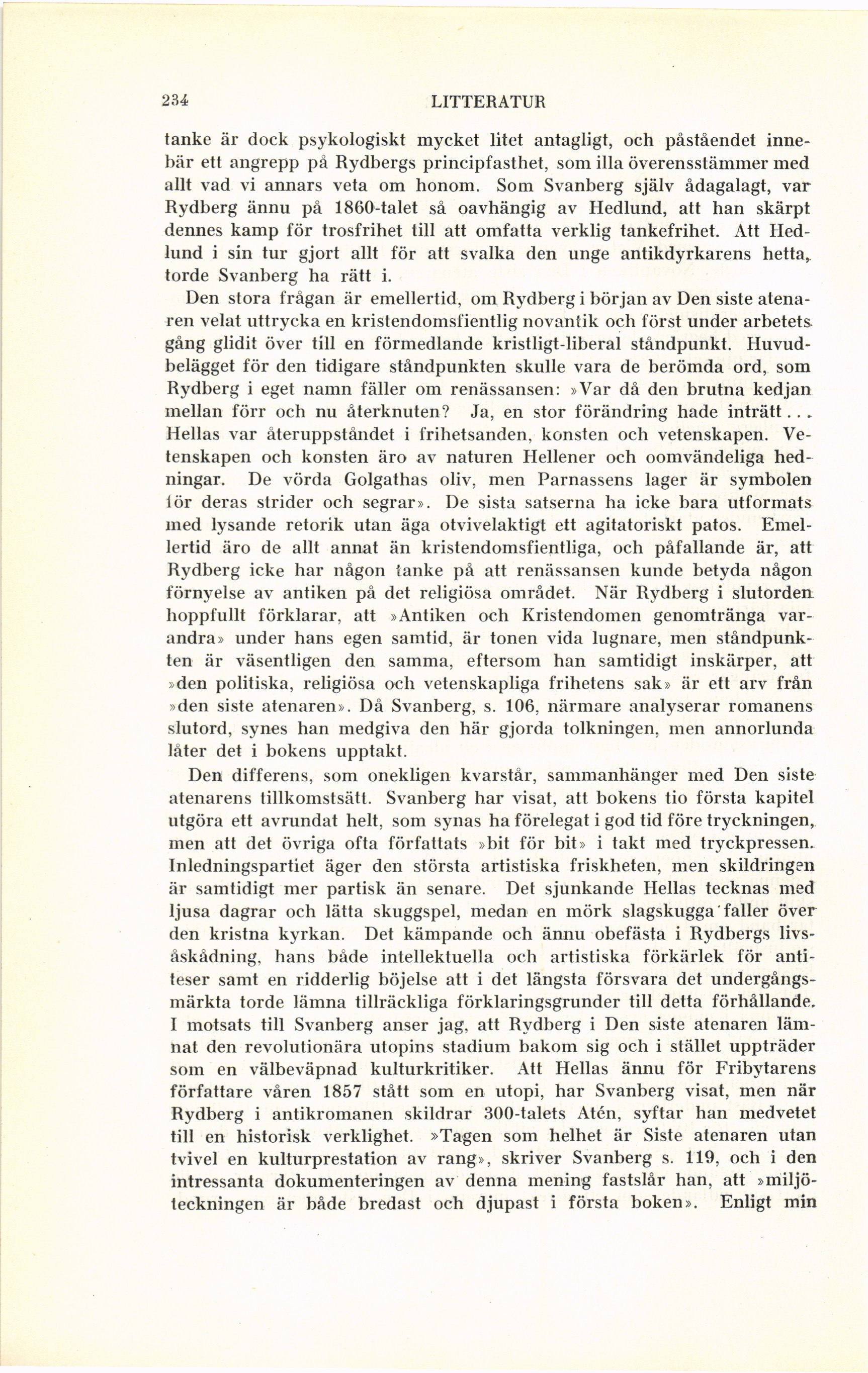 I motsats till Svanberg anser jag, att Rydberg i Den siste atenaren