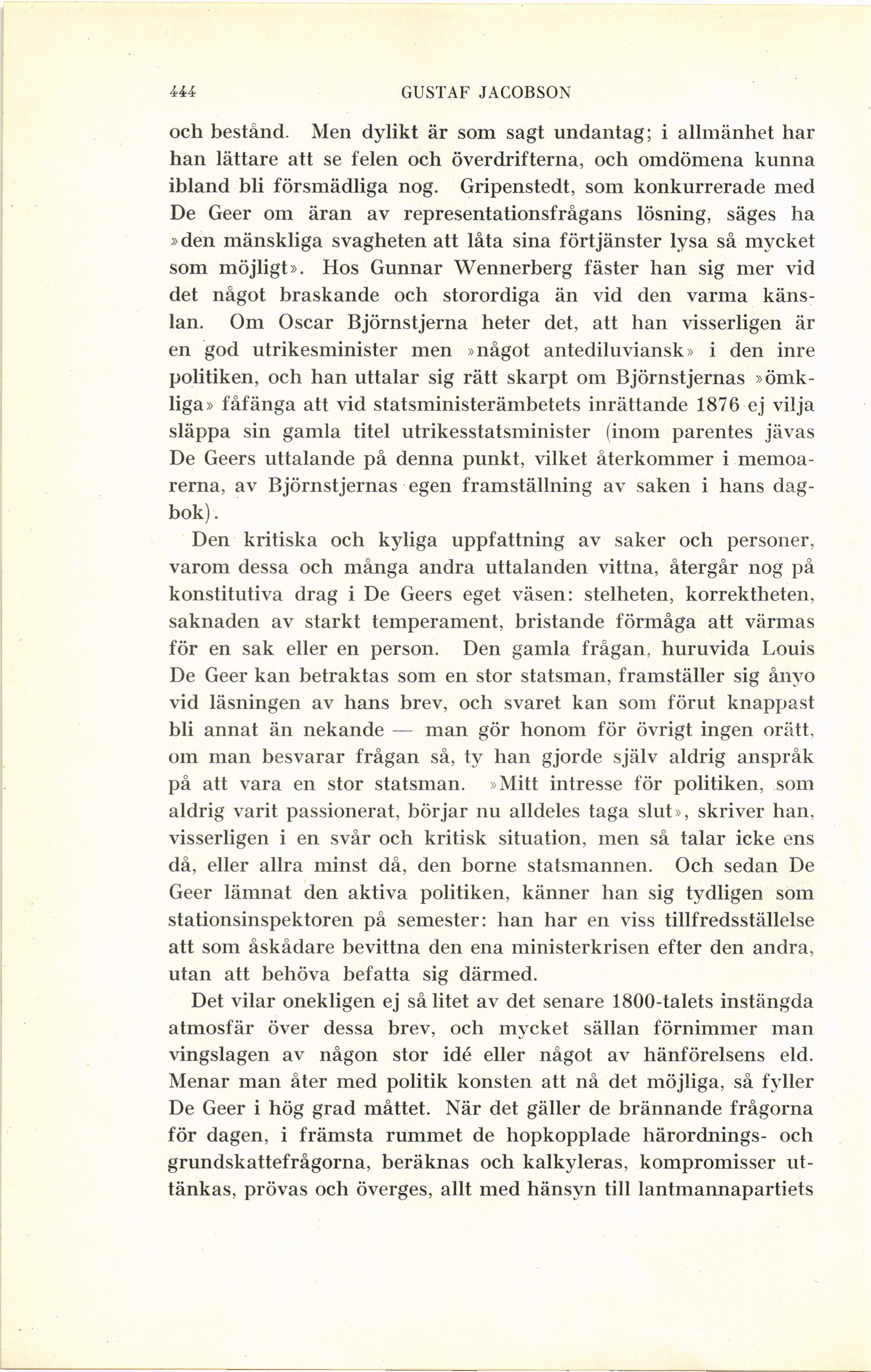 De Geer kan betraktas som en stor statsman, framställer sig ånyo
