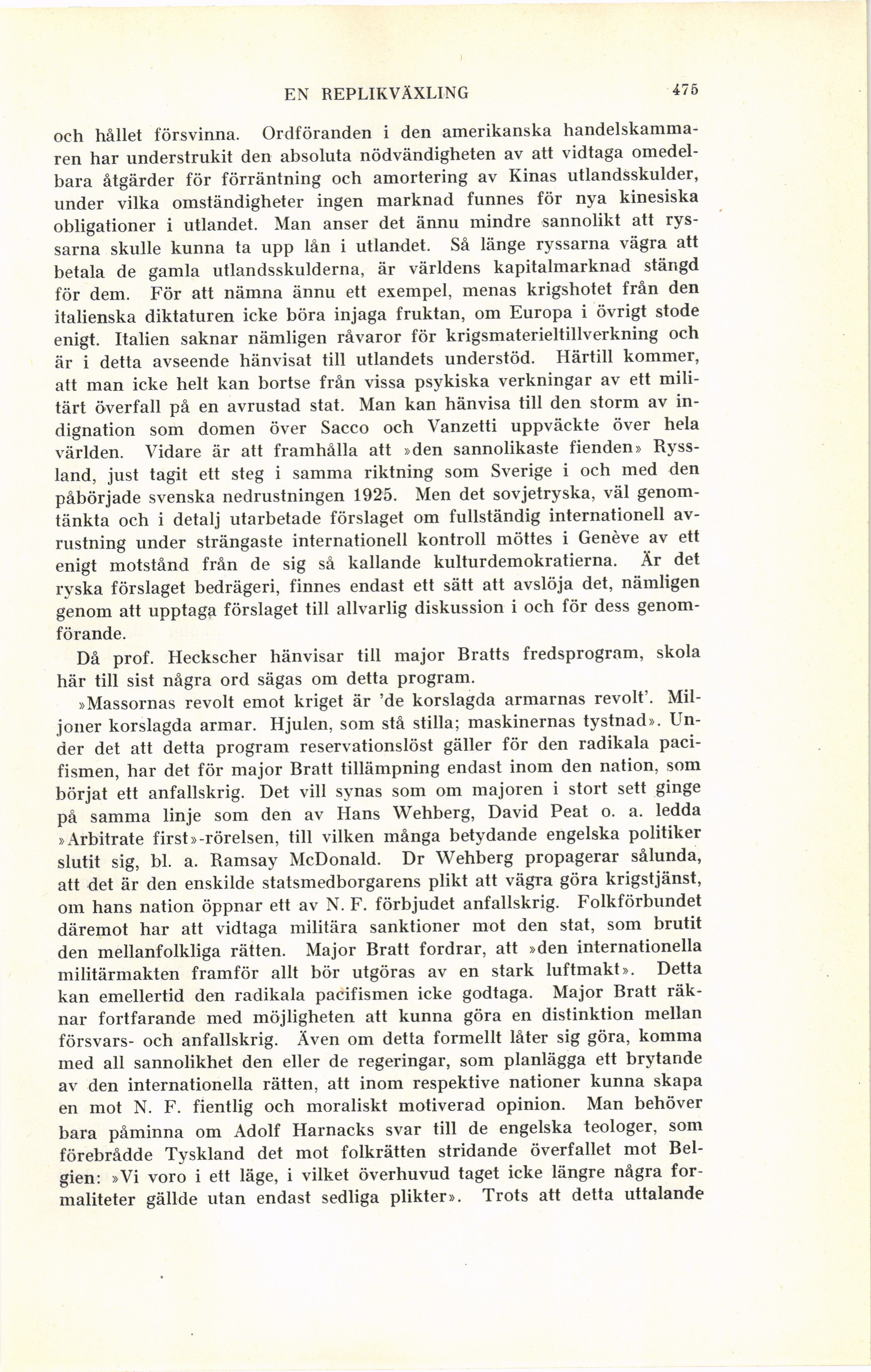 Då prof. Heckscher hänvisar till major Bratts fredsprogram, skola