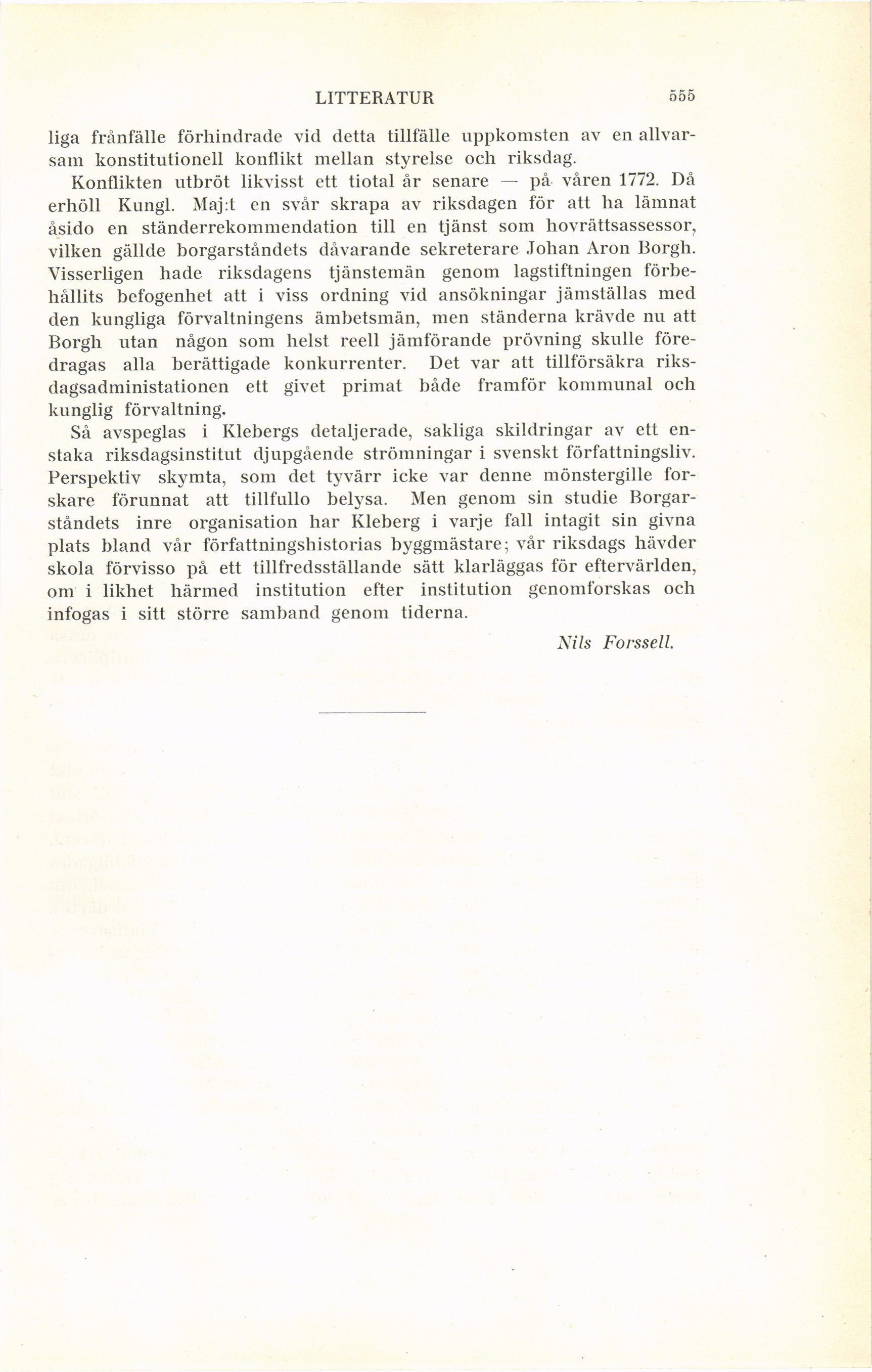 Full resolution (JPEG) - On this page / på denna sida - Häfte 7 - Litteratur - Ur det inre av svenska riksdagens historia. Av Nils Forssell - Edward Kleberg: Borgarståndets inre organisation intill 1809