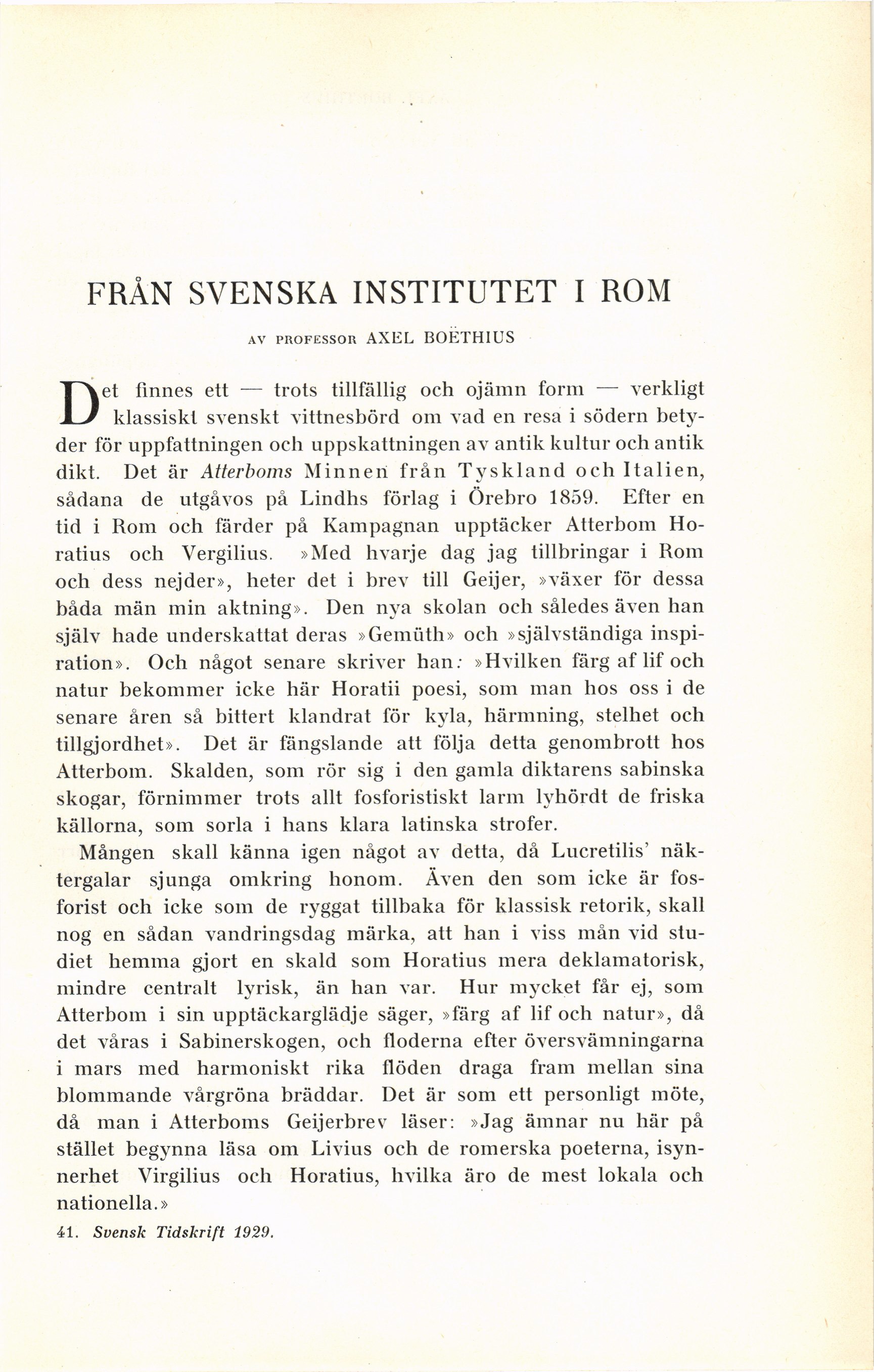 - Från Svenska Institutet i Rom. Av Axel Boëthius