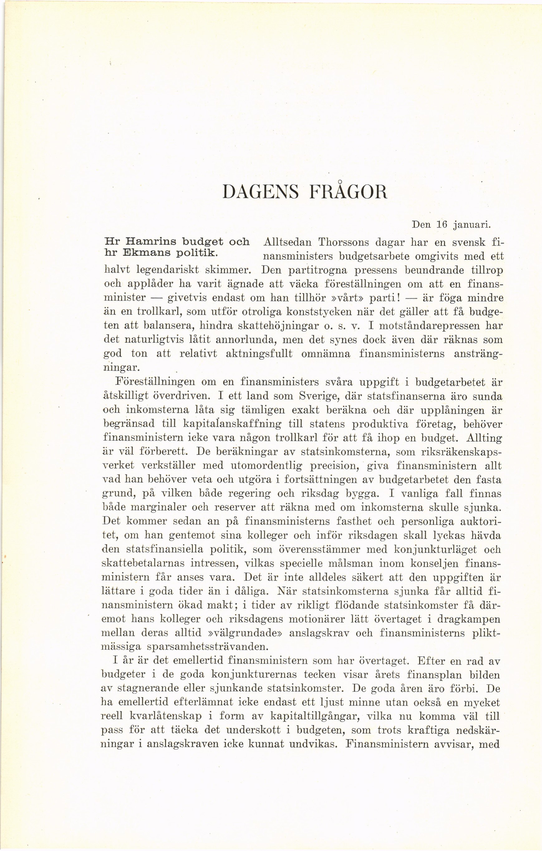 Full resolution (JPEG) - On this page / på denna sida - Häfte 1. 16 januari - Dagens frågor - Hr Hamrins budget och hr Ekmans politik