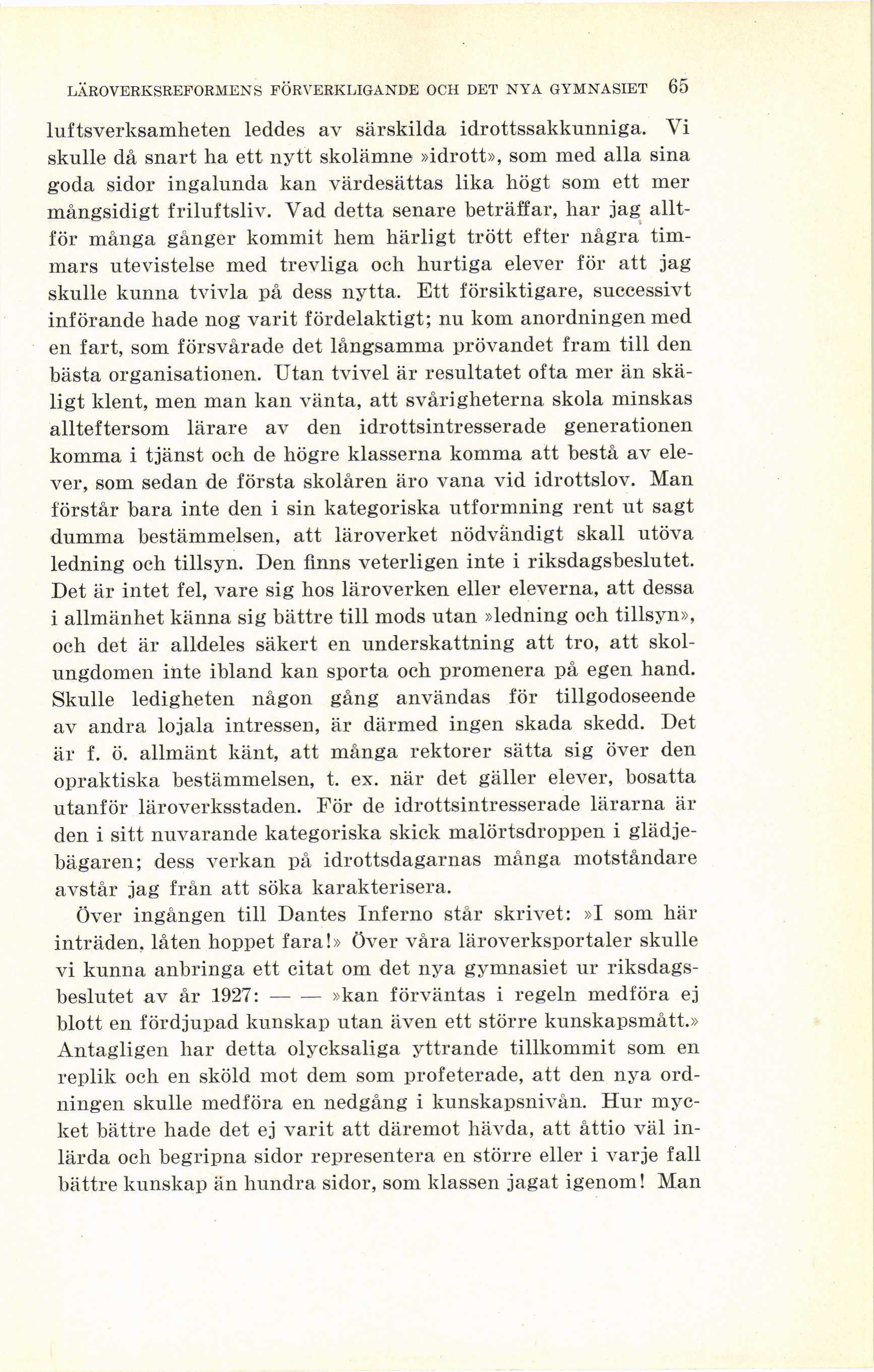 elever, som sedan de första skolåren äro vana vid idrottslov. Man