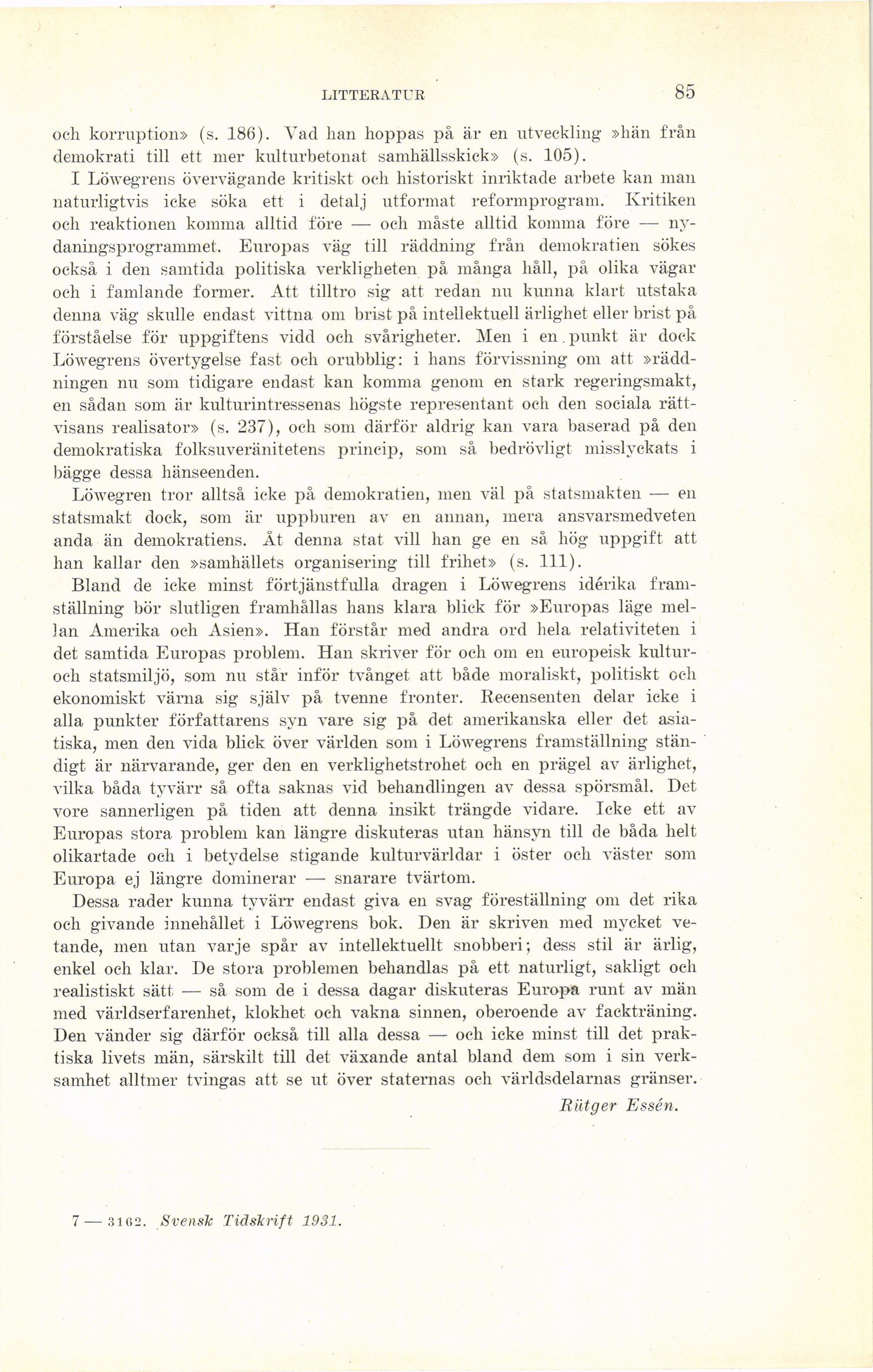 Full resolution (JPEG) - On this page / på denna sida - Häfte 2. 10 mars - Litteratur - En svensk studie över modernt stats- och samhällstänkande. Av Rütger Essén