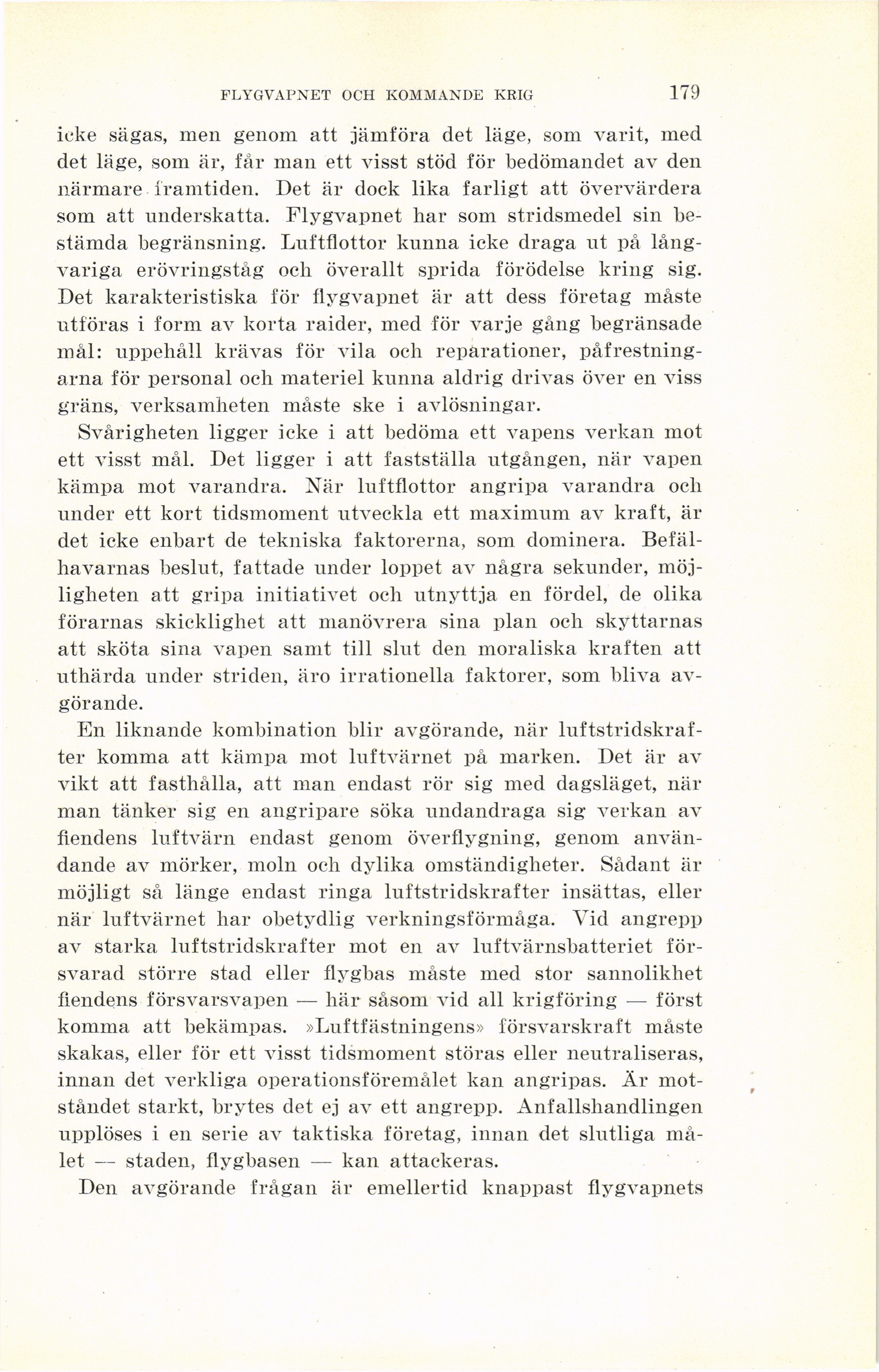 komma att bekämpas. »Luftfästningens» försvarskraft måste