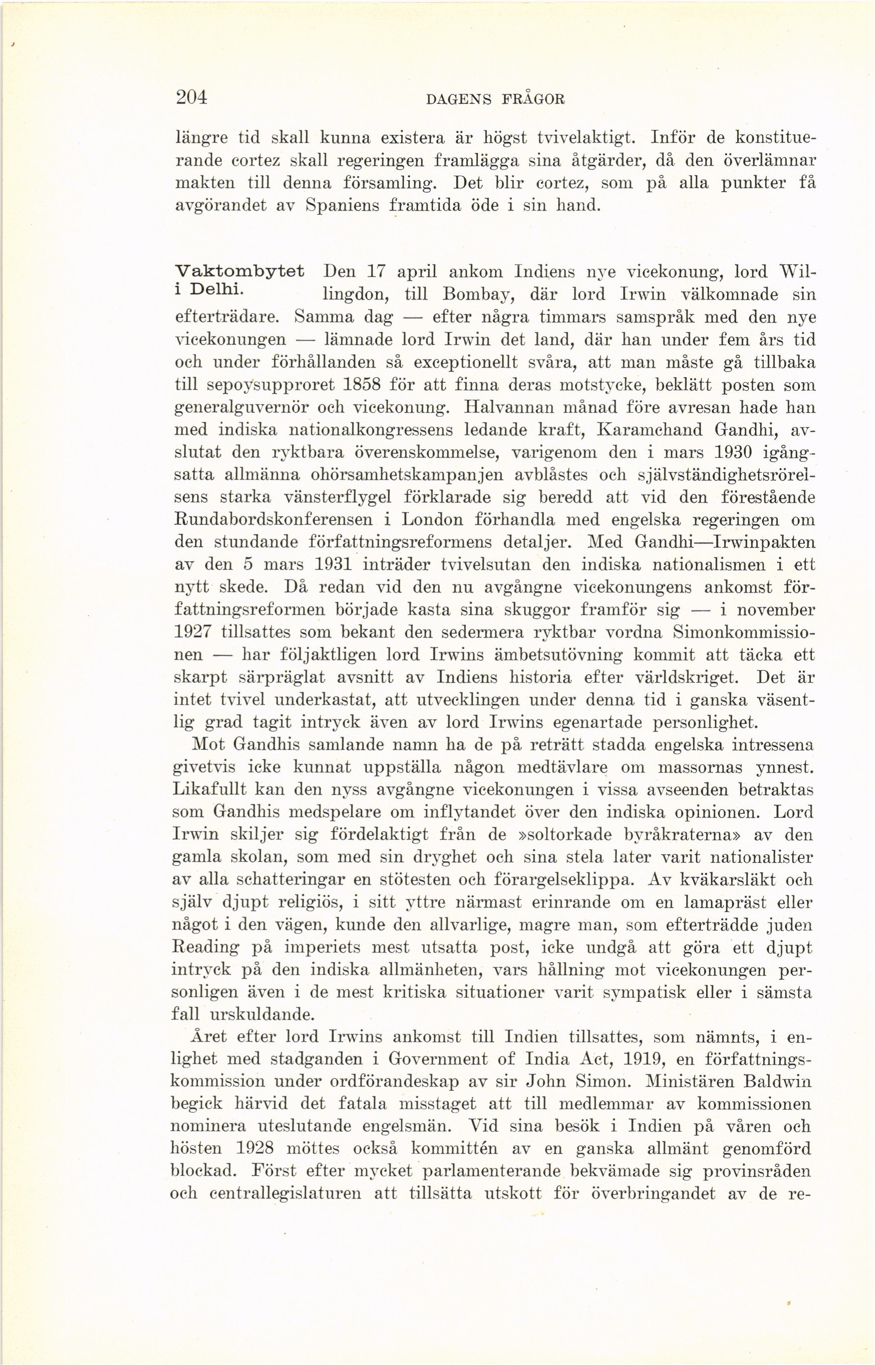 väsentlig grad tagit intryck även av lord Irwins egenartade personlighet.