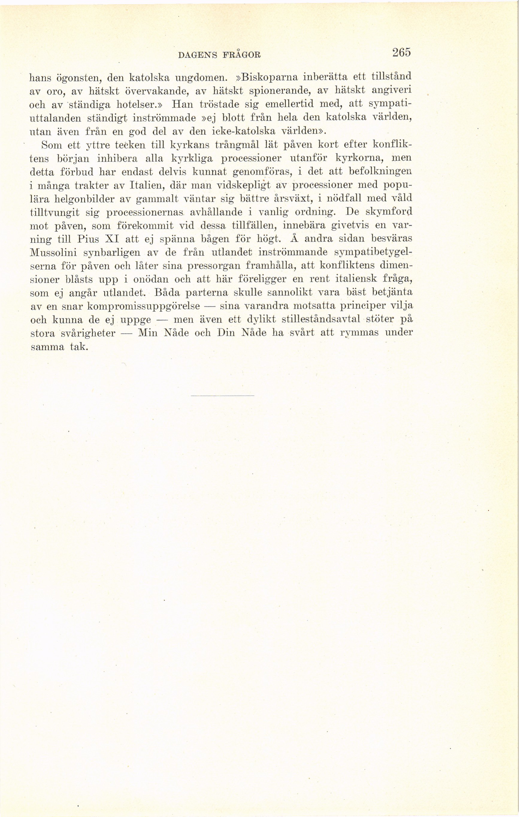 varning till Pius XI att ej spänna bågen för högt. Å andra sidan besväras