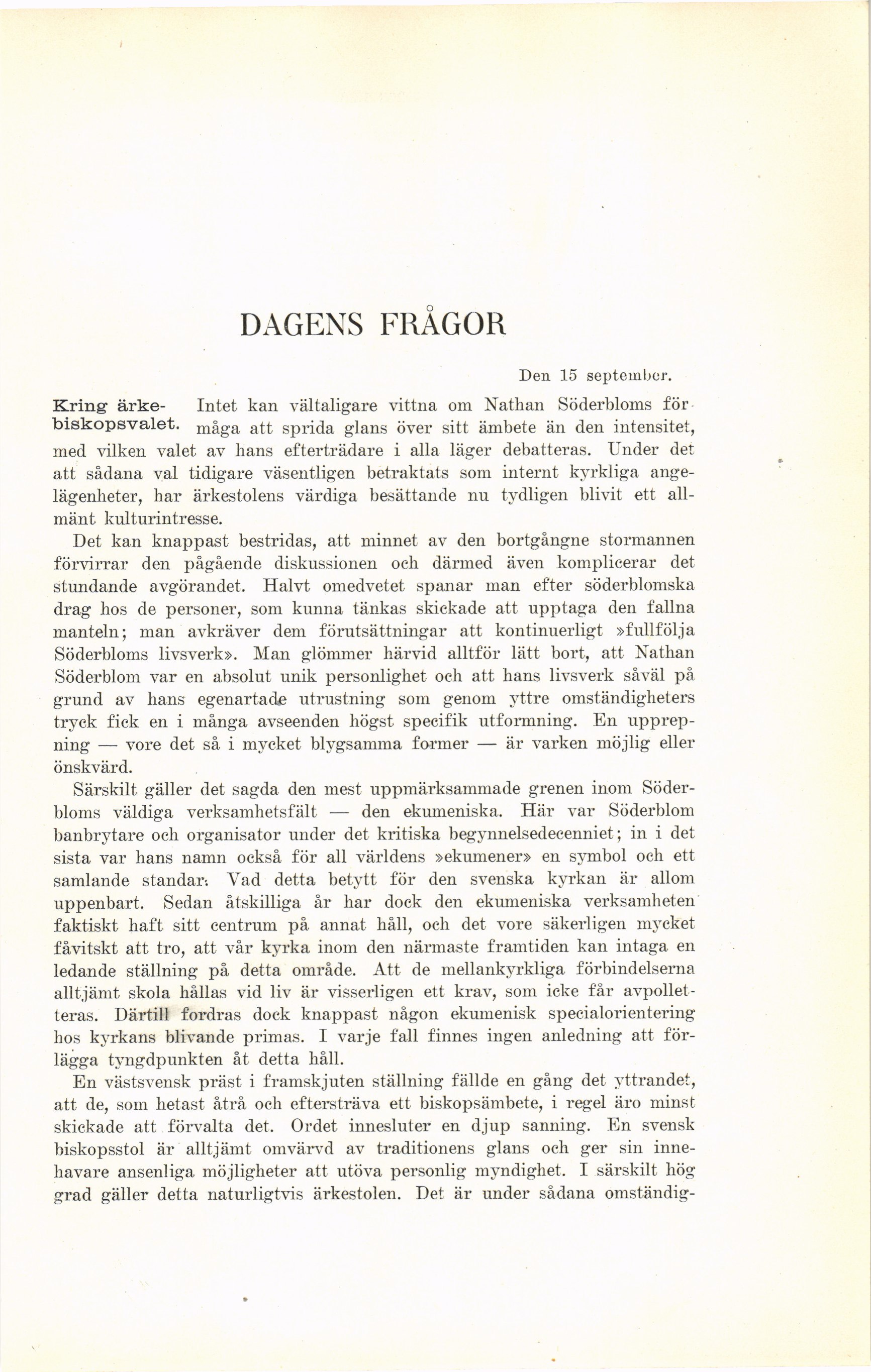Full resolution (JPEG) - On this page / på denna sida - Häfte 6. 15 september - Dagens frågor - Kring ärkebiskopsvalet