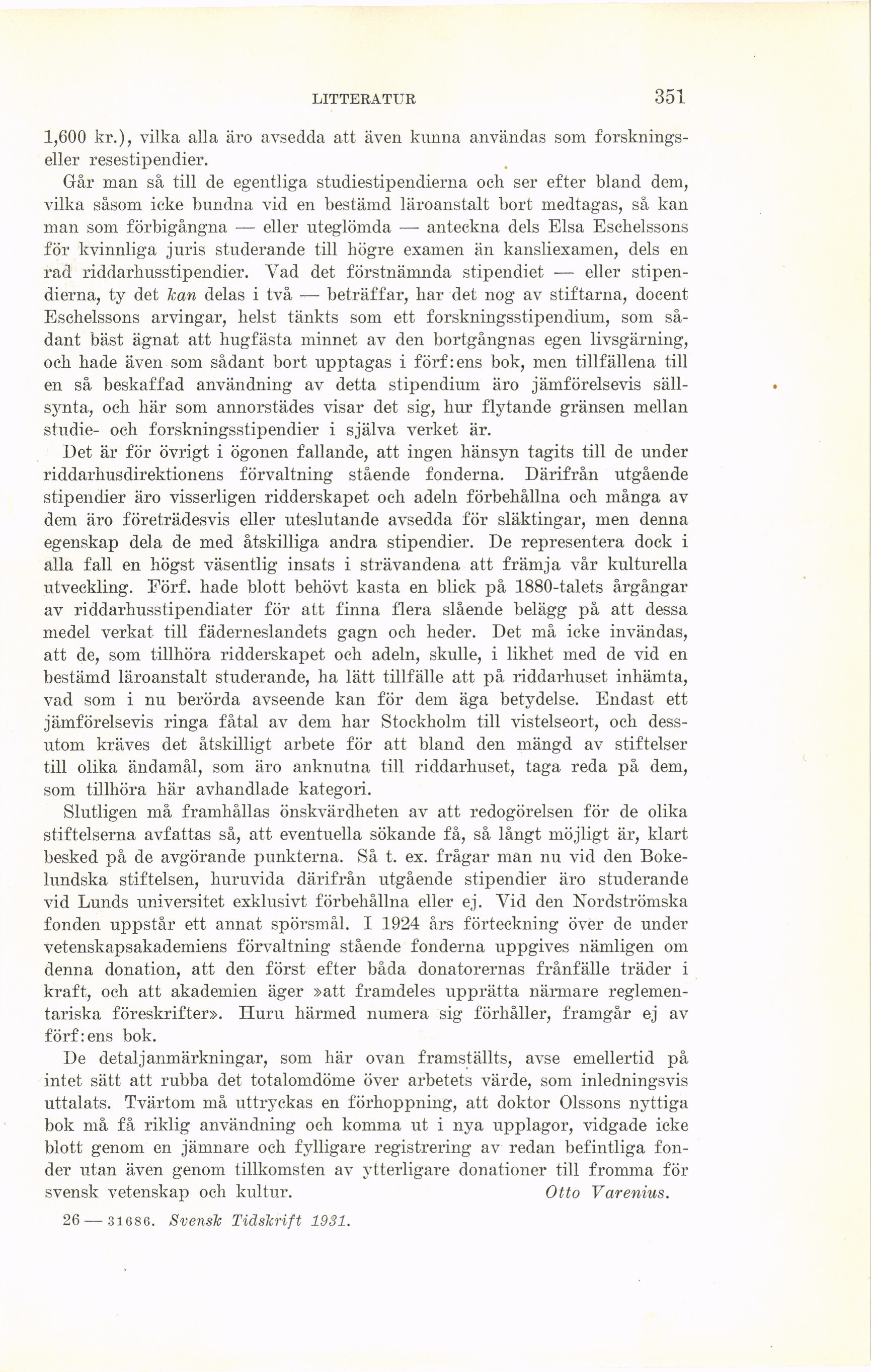 Full resolution (JPEG) - On this page / på denna sida - Häfte 7. 6 november - Litteratur - Svenska kulturfonder. Av Otto Varenius