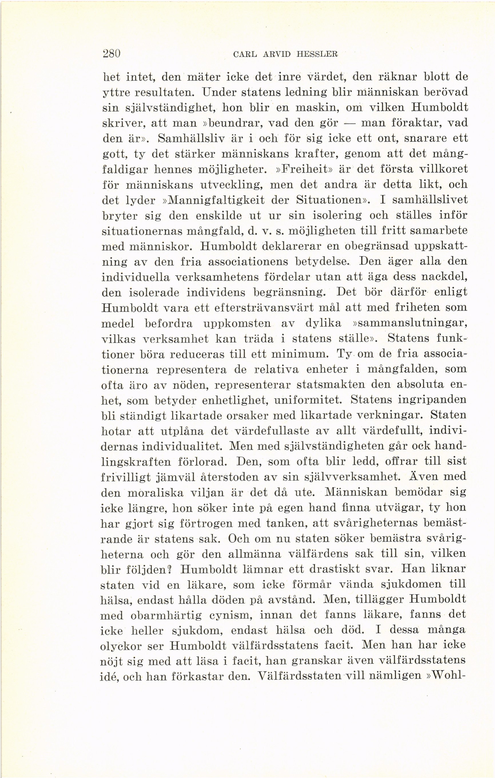 Humboldt vara ett eftersträvansvärt mål att med friheten som