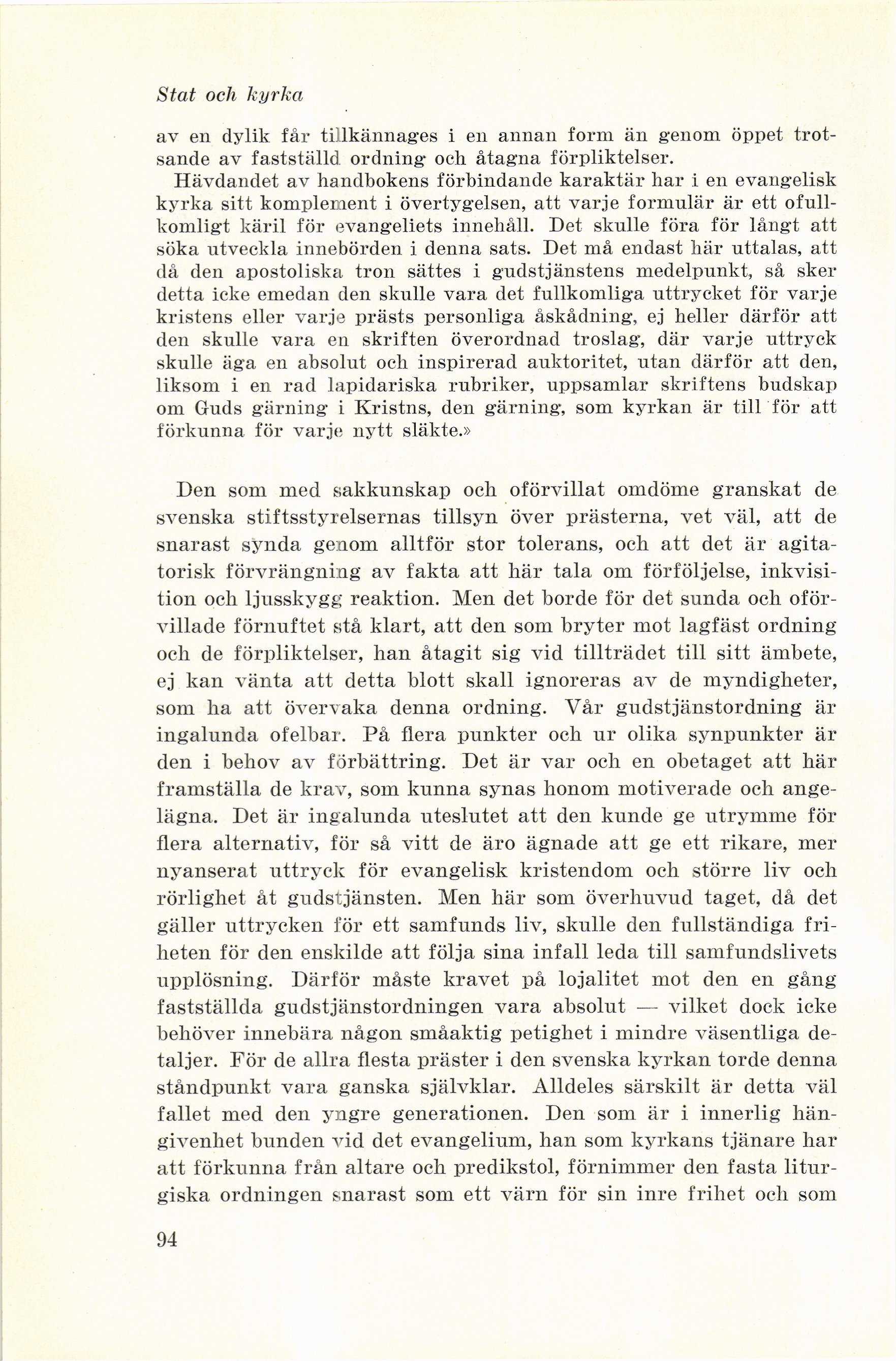 liturgiska ordningen snarast som ett värn för sin inre frihet oeh som