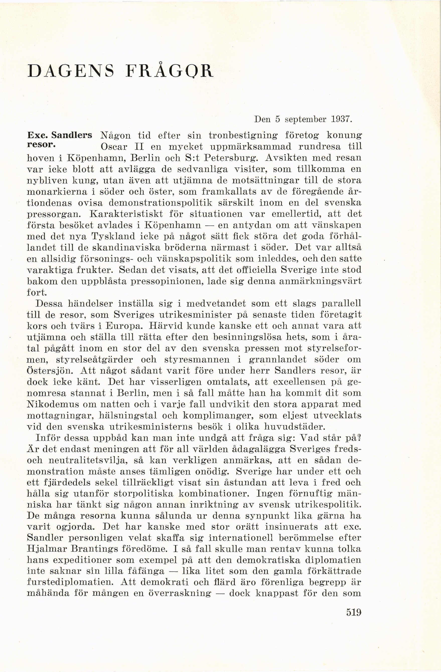 Full resolution (JPEG) - On this page / på denna sida - Häfte 7 - Dagens frågor 5 september 1937 - Exc. Sandlers resor