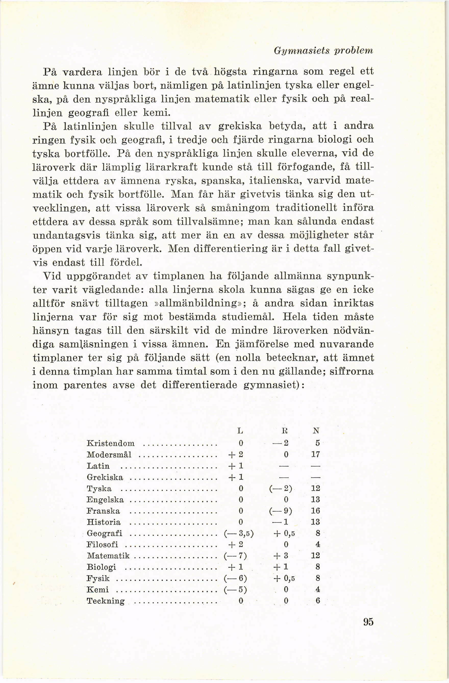 nödvändiga samläsningen i vissa ämnen. En jämförelse med nuvarande
